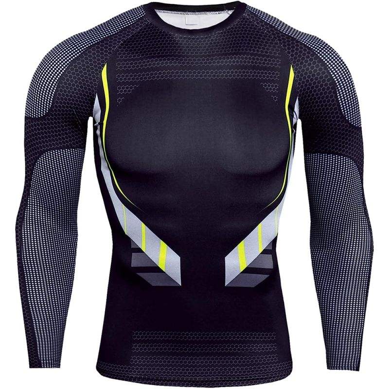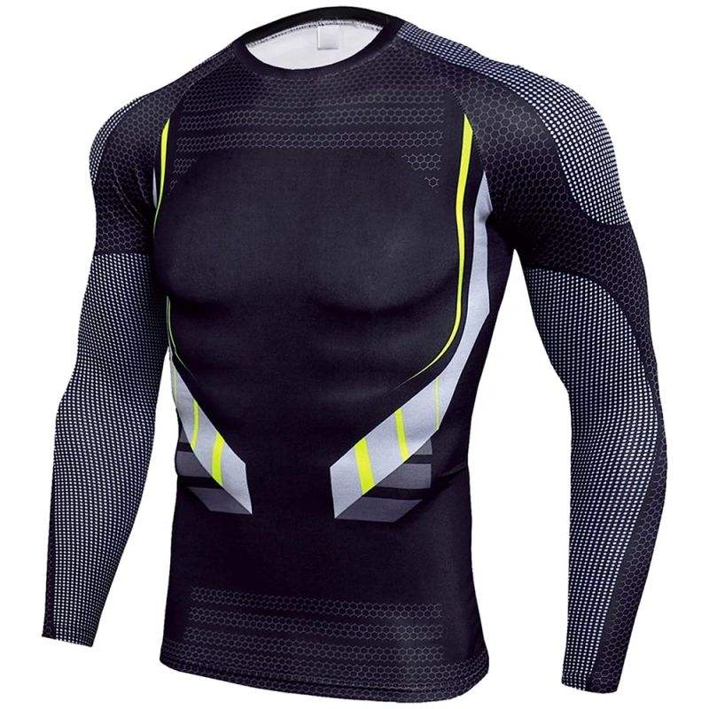 เสื้อคอมเพรสชั่นผู้ชาย น้ำหนักเบา แขนยาว สำหรับเล่นกีฬา วิ่ง แห้งเร็ว ระบายอากาศได้ดี