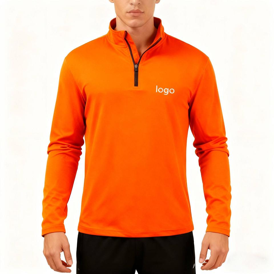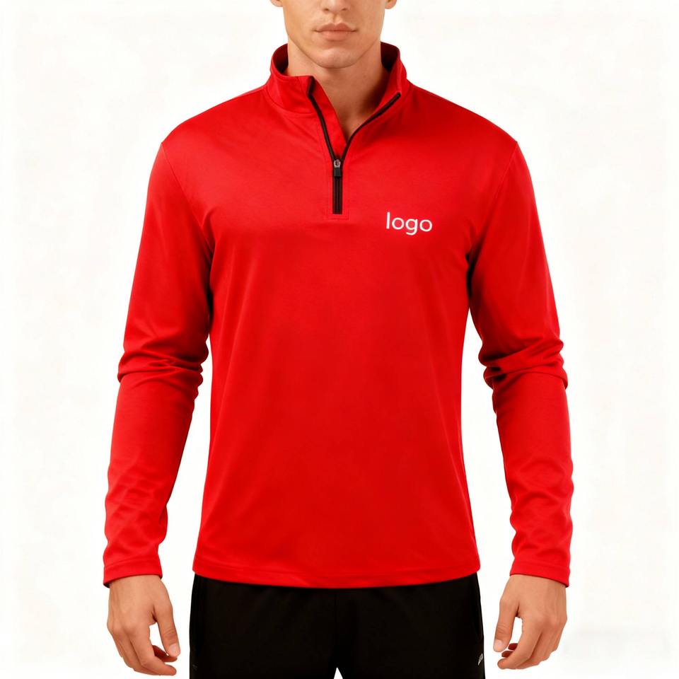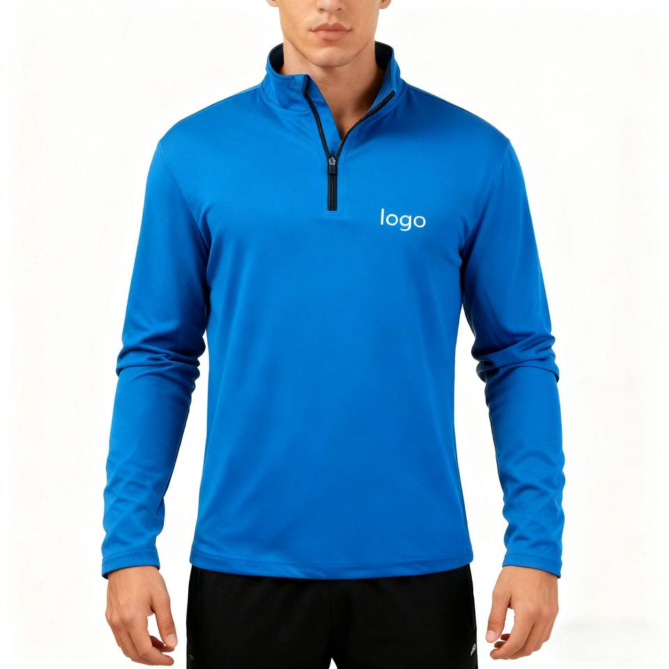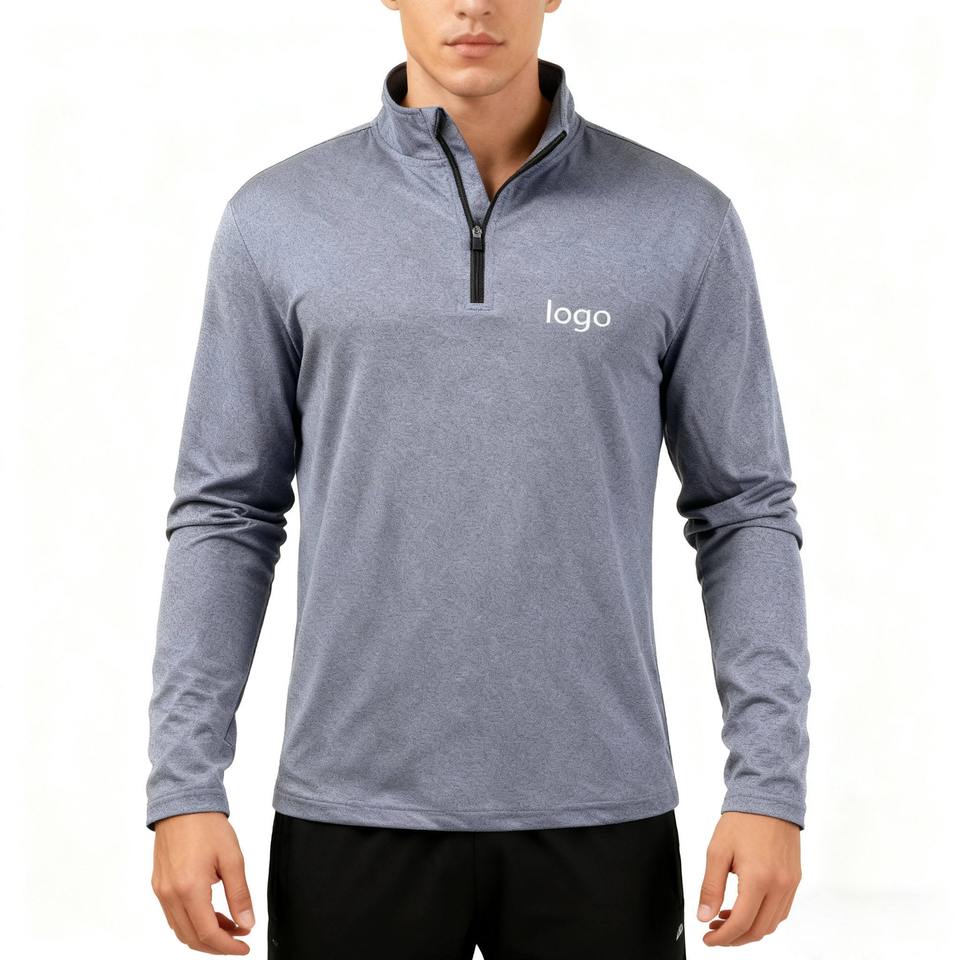 เสื้อโปโลแขนยาวผู้ชายเนื้อผ้าถักน้ำหนักเบา ซิป ¼ ผ้าโพลีเอสเตอร์ เหมาะสำหรับตกปลา เดินป่า ออกกำลังกาย