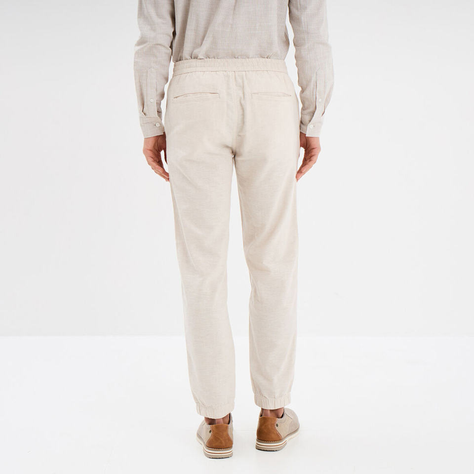 กางเกงจ็อกเกอร์ผ้าลินินผสมแคนวาสทรงตรงสำหรับผู้ชาย น้ำหนักเบา ดีไซน์เรียบง่าย สวมใส่สบาย ยืดหยุ่นได้ ไม่ยับ แห้งเร็ว