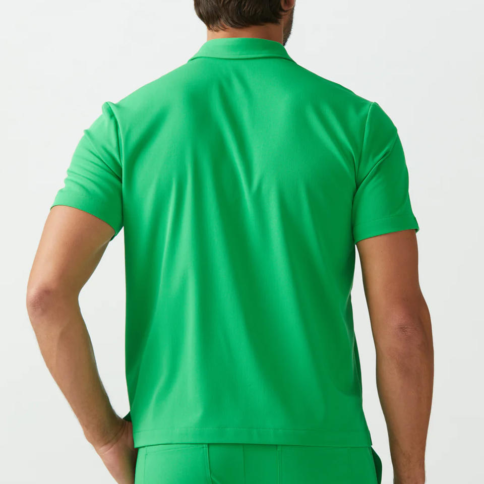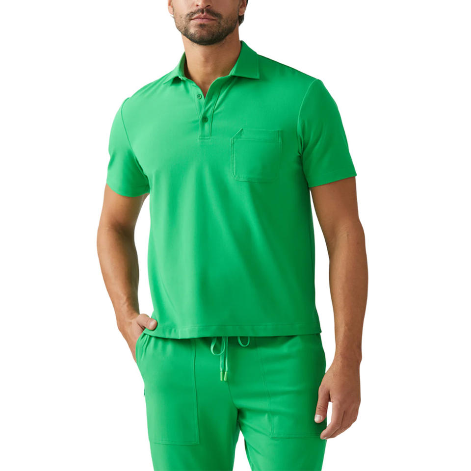 เสื้อสครับผู้ชายน้ำหนักเบาพิมพ์ลายโลโก้ได้ตามต้องการชุดเครื่องแบบทางการแพทย์ที่ทนทานสำหรับคลินิกและแล็บในโรงพยาบาล