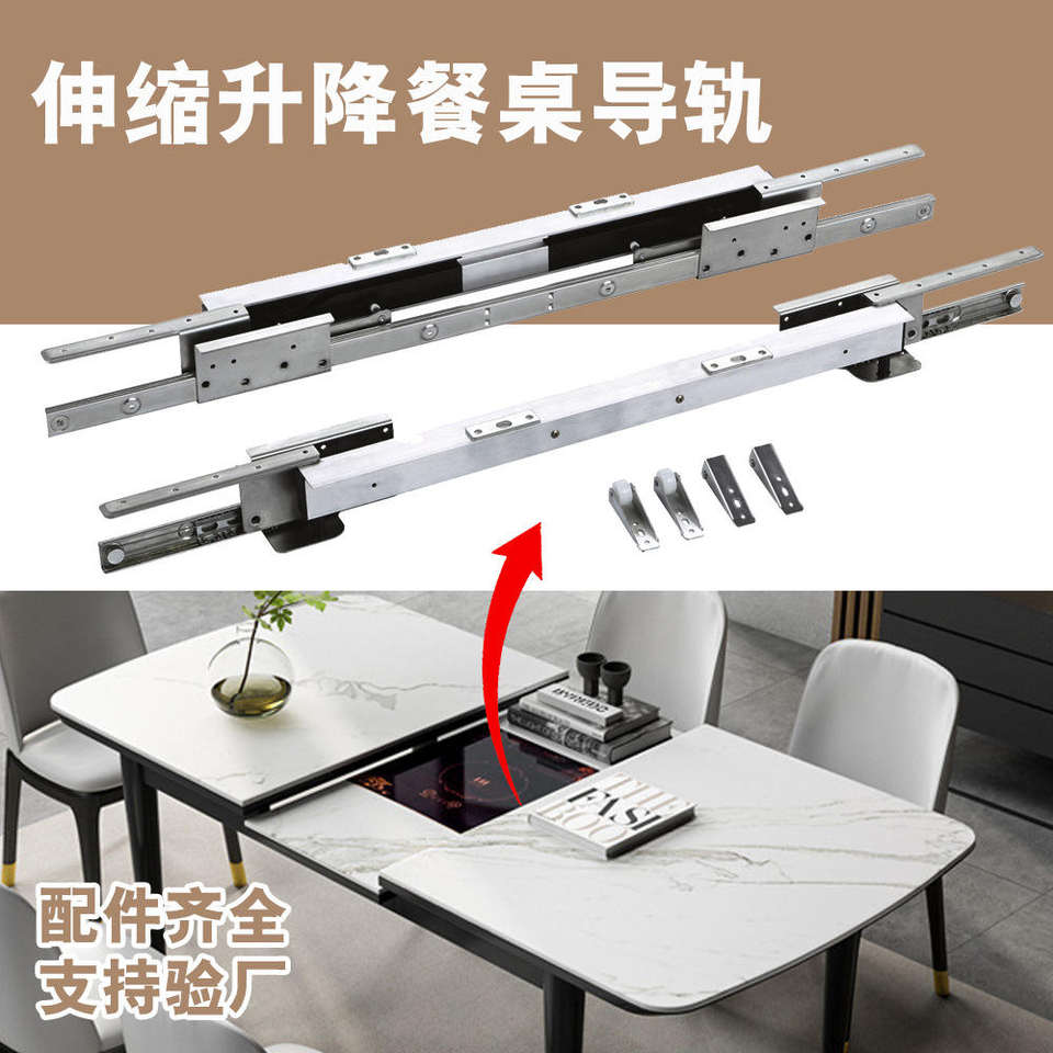 รางเลื่อนขาโต๊ะโลหะน้ำหนักเบาอเนกประสงค์ โต๊ะรับประทานอาหารรูปตัว L ดีไซน์ทันสมัย ยกขึ้นได้ด้วยสปริง ใช้งานง่าย เหมาะสำหรับห้องครัว โรงแรม