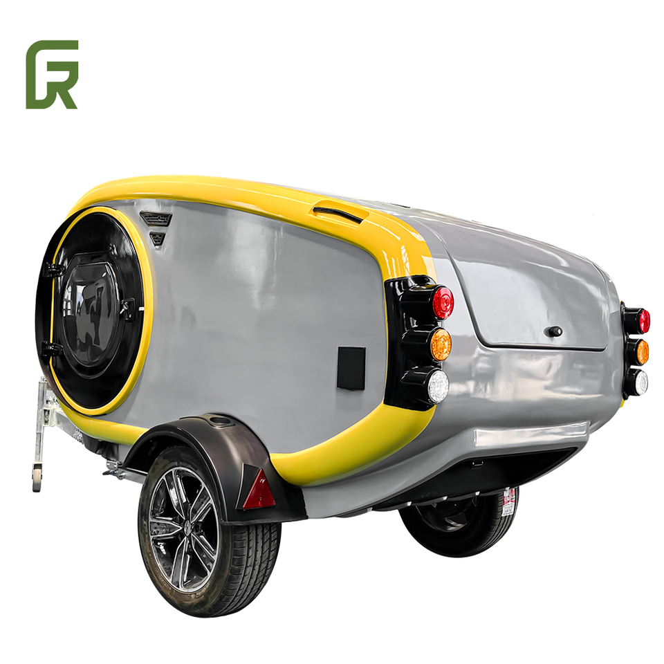 รถพ่วงไฟเบอร์กลาสทรงหยดน้ำตาสำหรับออกแคมป์กลางแจ้งรถพ่วงขนาดเล็กน้ำหนักเบาพกพาได้และเคลื่อนย้ายได้