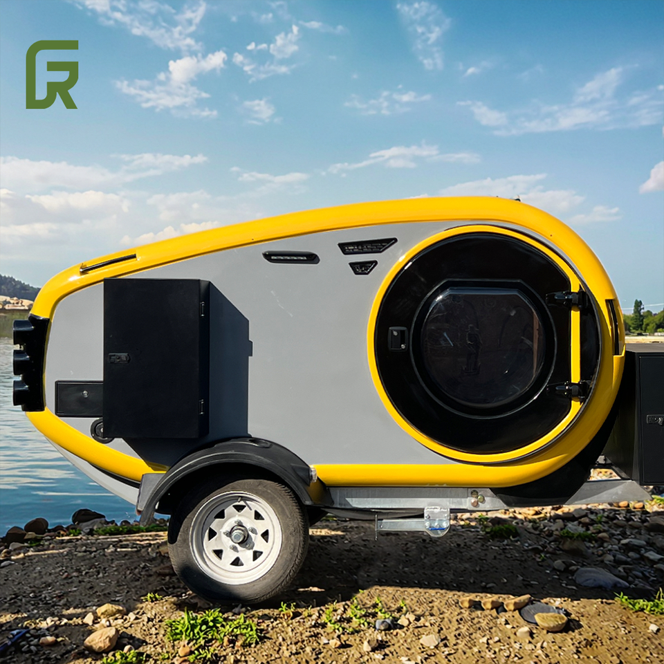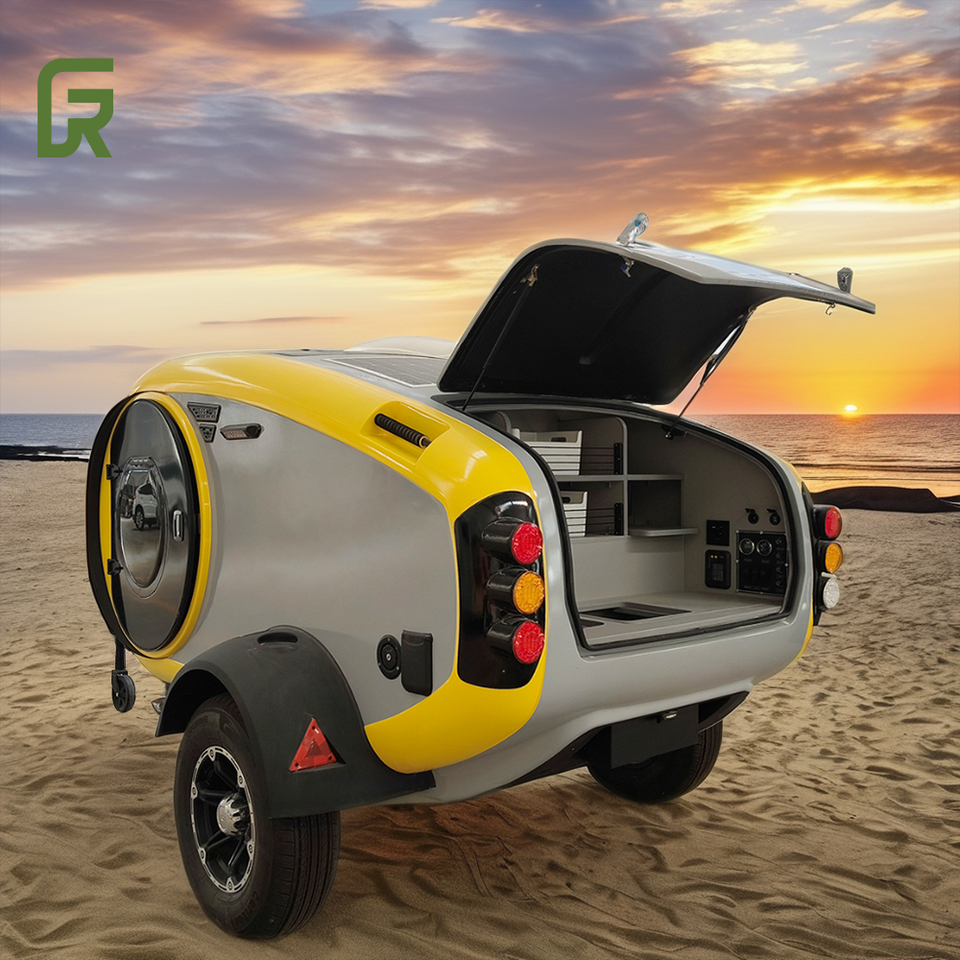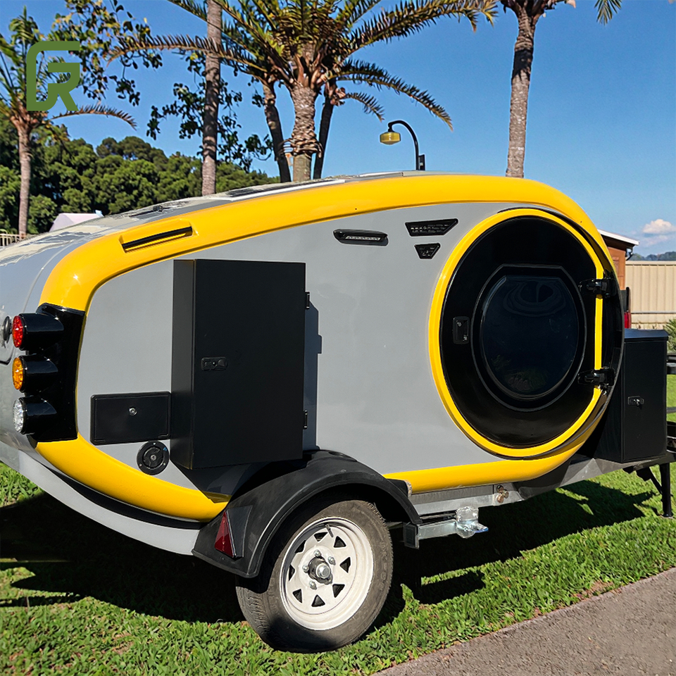 รถเทรลเลอร์เดินทางขนาดเล็กน้ำหนักเบารถเทรลเลอร์ไฟเบอร์กลาสออฟโร้ด RV แคมป์ปิ้งเครื่องใช้ในครัว