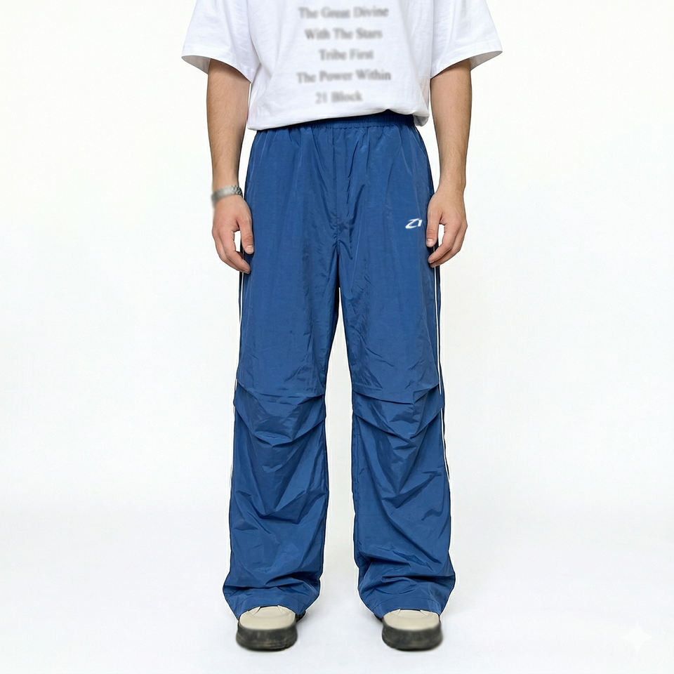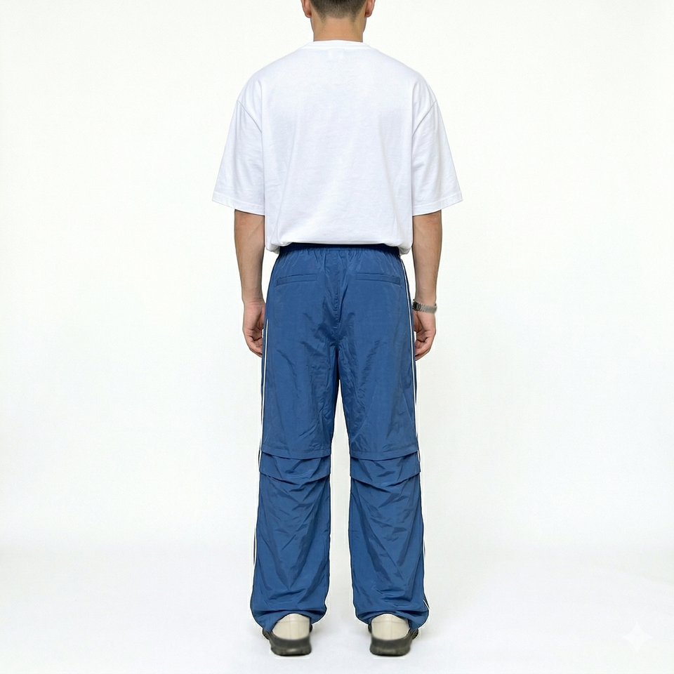 กางเกงแทร็คน้ำหนักเบาผ้าไนลอนสำหรับผู้ชาย กันลม ทรงหลวม เอวยางยืด สไตล์สตรีทแวร์ กางเกงคาร์โก้แบบมีแผง ผลิตตามสั่ง จำนวนมาก
