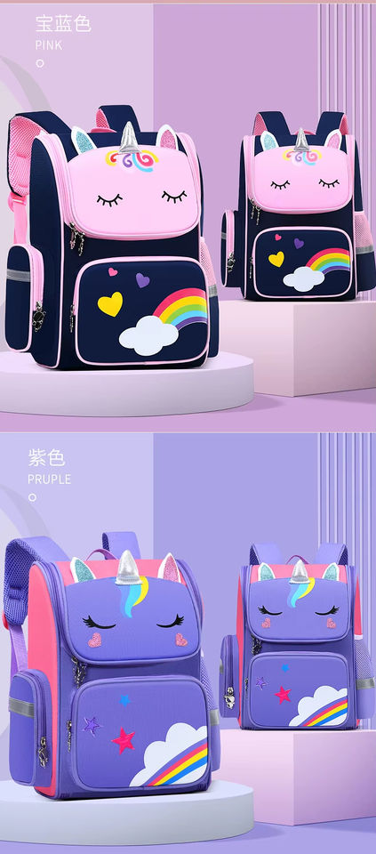 กระเป๋าเป้สะพายหลังสำหรับโรงเรียนประถมศึกษาใช้ได้ทั้งชายและหญิงรุ่นเกาหลีป้องกันกระดูกสันหลังลายทางกันน้ำน้ำหนักเบา