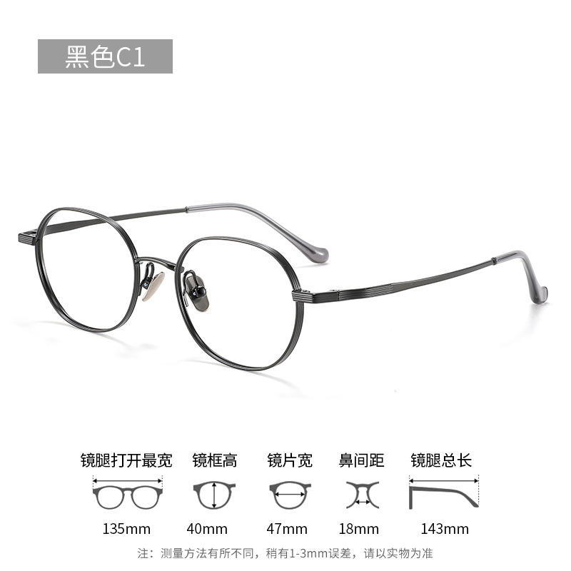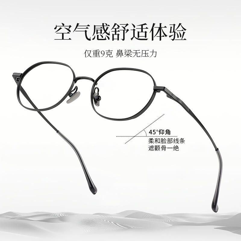 กรอบแว่นตาไทเทเนียมบริสุทธิ์รูปไข่น้ำหนักเบา 9 กรัมผู้หญิงใบหน้าเล็กสายตาสั้นนักเรียนแว่นตา 28025 ตันหยาง