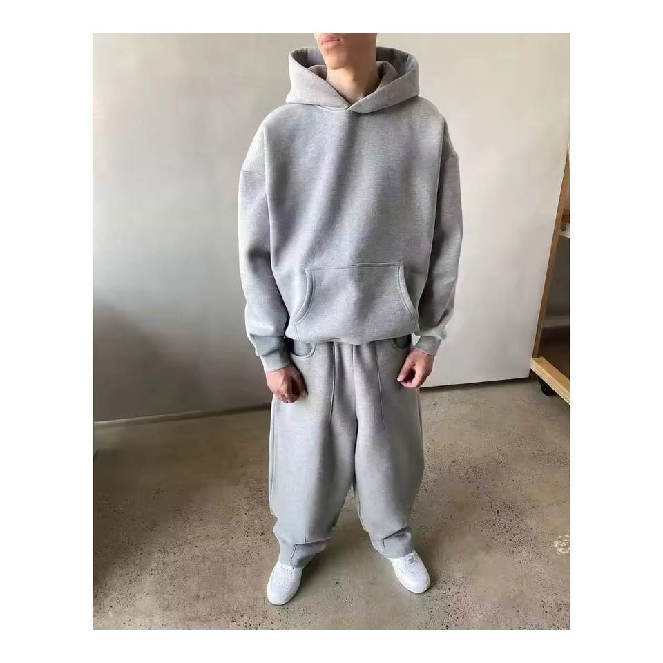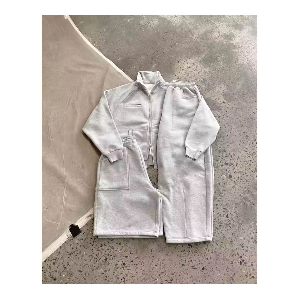 ชุดเซ็ตฮู้ดดี้และกางเกงวอร์มขาบานประดับเพชรเทียม ซิปแบบดิสเทรส ไซส์พลัส น้ำหนักเบา สไตล์สตรีทแวร์ ล้างสีแบบแอซิดวอช สำหรับผู้ชาย