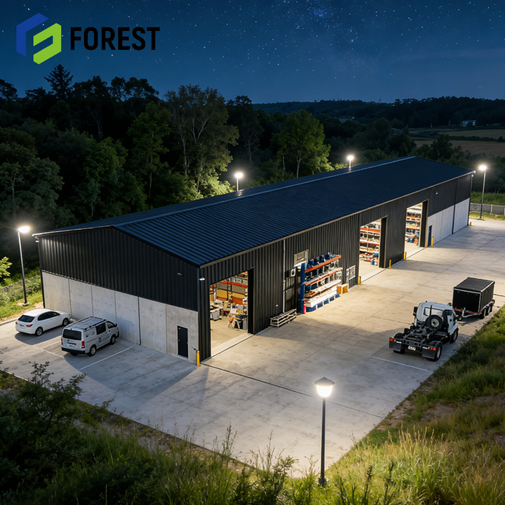 โกดังและโรงงานโครงสร้างเหล็กสำเร็จรูปน้ำหนักเบา สำหรับสำนักงานโลจิสติกส์ โรงพยาบาล และพื้นที่เก็บของ ประกอบง่ายรวดเร็ว