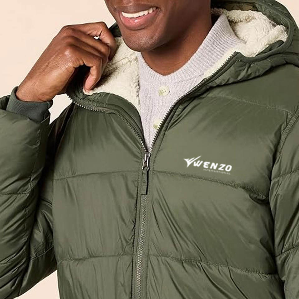 เสื้อแจ็คเก็ตพัฟเฟอร์มีฮู้ดน้ำหนักเบาสำหรับผู้ชาย เสื้อโค้ทบุใยอุ่นสำหรับฤดูหนาว พร้อมโลโก้ด้านหน้า เหมาะสำหรับการเดินทางกลางแจ้ง แฟชั่นลำลอง และสวมใส่ในชีวิตประจำวัน