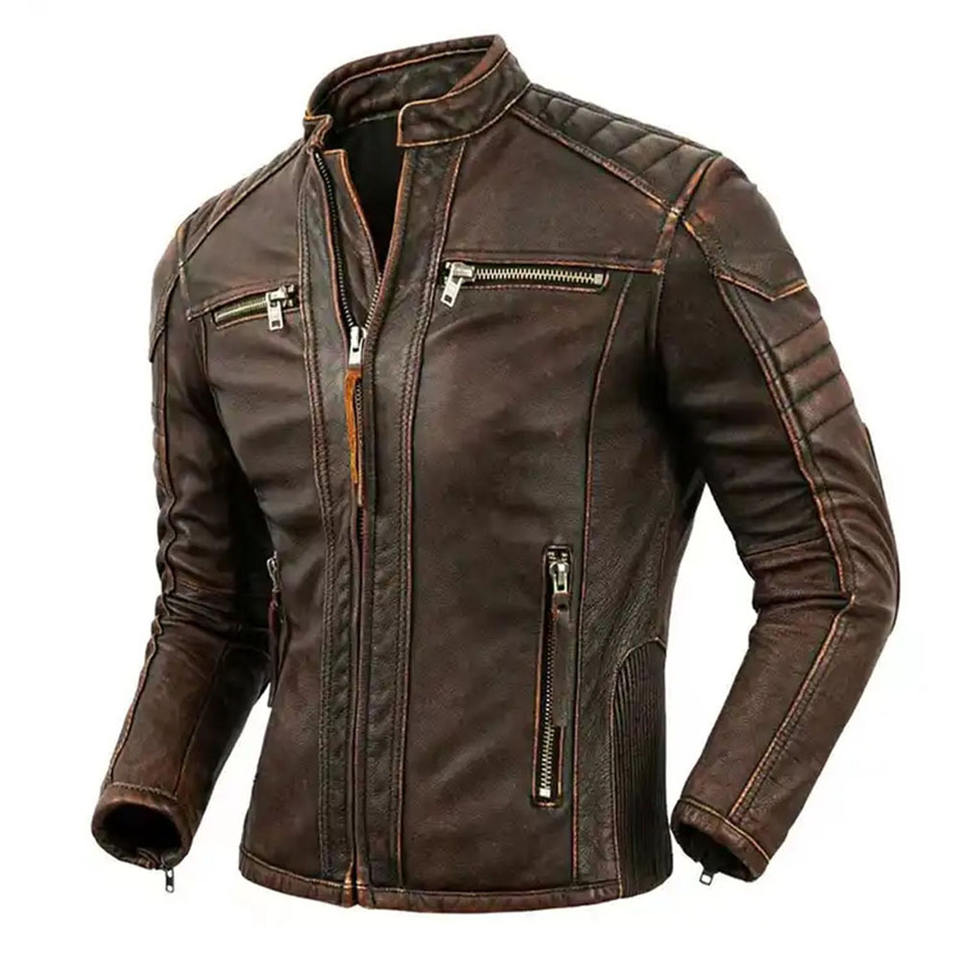 แจ็กเก็ตหนังแท้น้ำหนักเบาสำหรับผู้ชายแจ็คเก็ตแนวสตรีทของผู้ชายให้ความอบอุ่นมีสไตล์