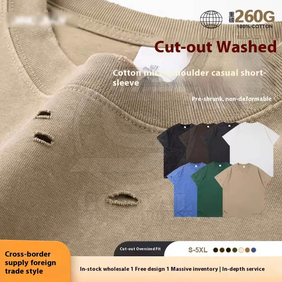 เสื้อยืดผู้ชายสไตล์ดิสเทรส น้ำหนักเบา แห้งเร็ว เหมาะสำหรับกิจกรรมกลางแจ้ง แฟชั่น ราคาประหยัด