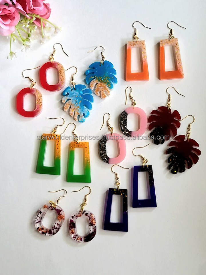 ต่างหูแบบกดแห้งจริงน้ำหนักเบาต่างหูลายดอกไม้สำหรับผู้หญิงต่างหูเรซิ่นเครื่องประดับอย่าลืมฉันไม่ Myosotis sylvatica Women