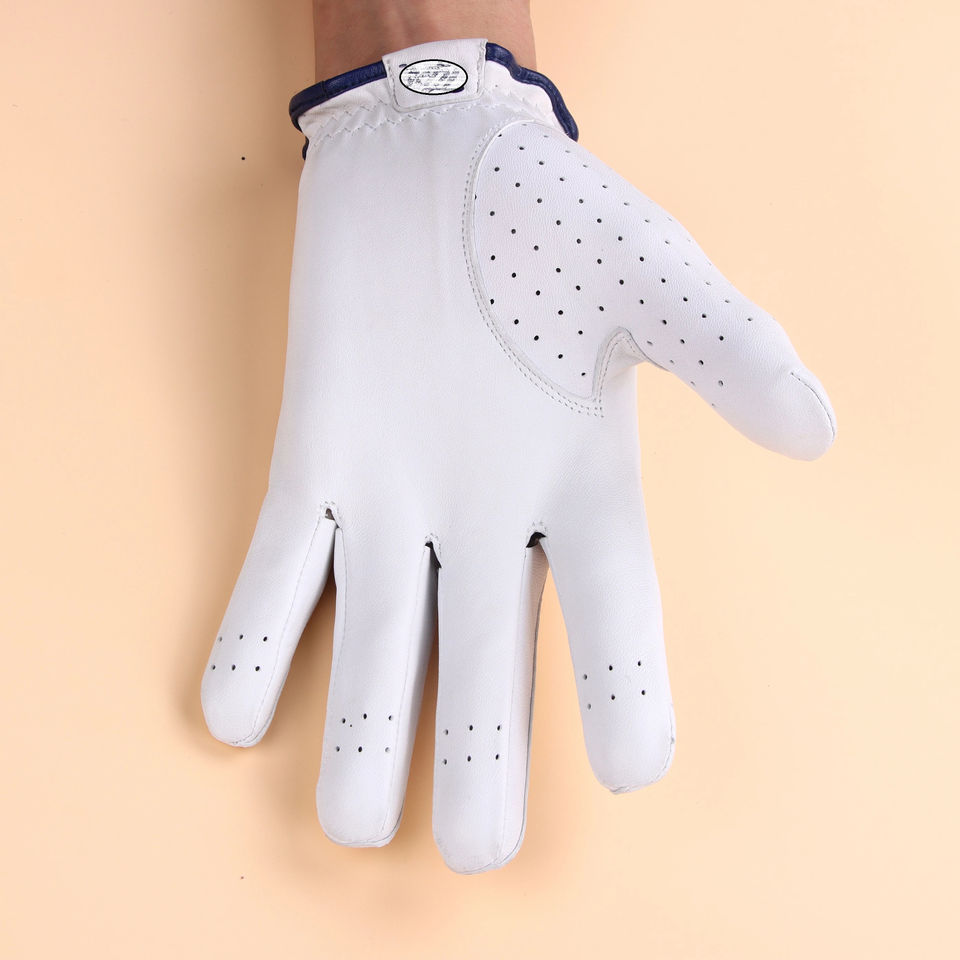 ถุงมือกอล์ฟหนังแกะพิมพ์ลายน้ำหนักเบาสำหรับผู้ชายดีไซน์ล่าสุดป้องกันริ้วรอยหนังแท้ระบายอากาศได้ดี