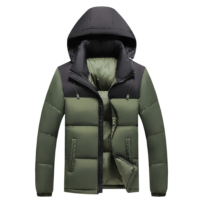 แจ็กเก็ตผู้ชายน้ำหนักเบาเข้ารูปผ้าฝ้ายมีฮู้ดถอดออกได้หนาเสื้อโค้ทมีฮู้ดสไตล์เรียบง่าย