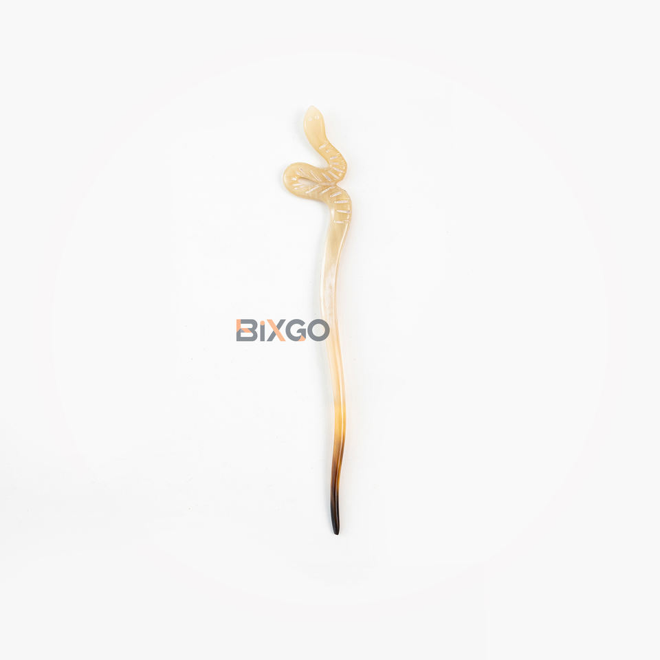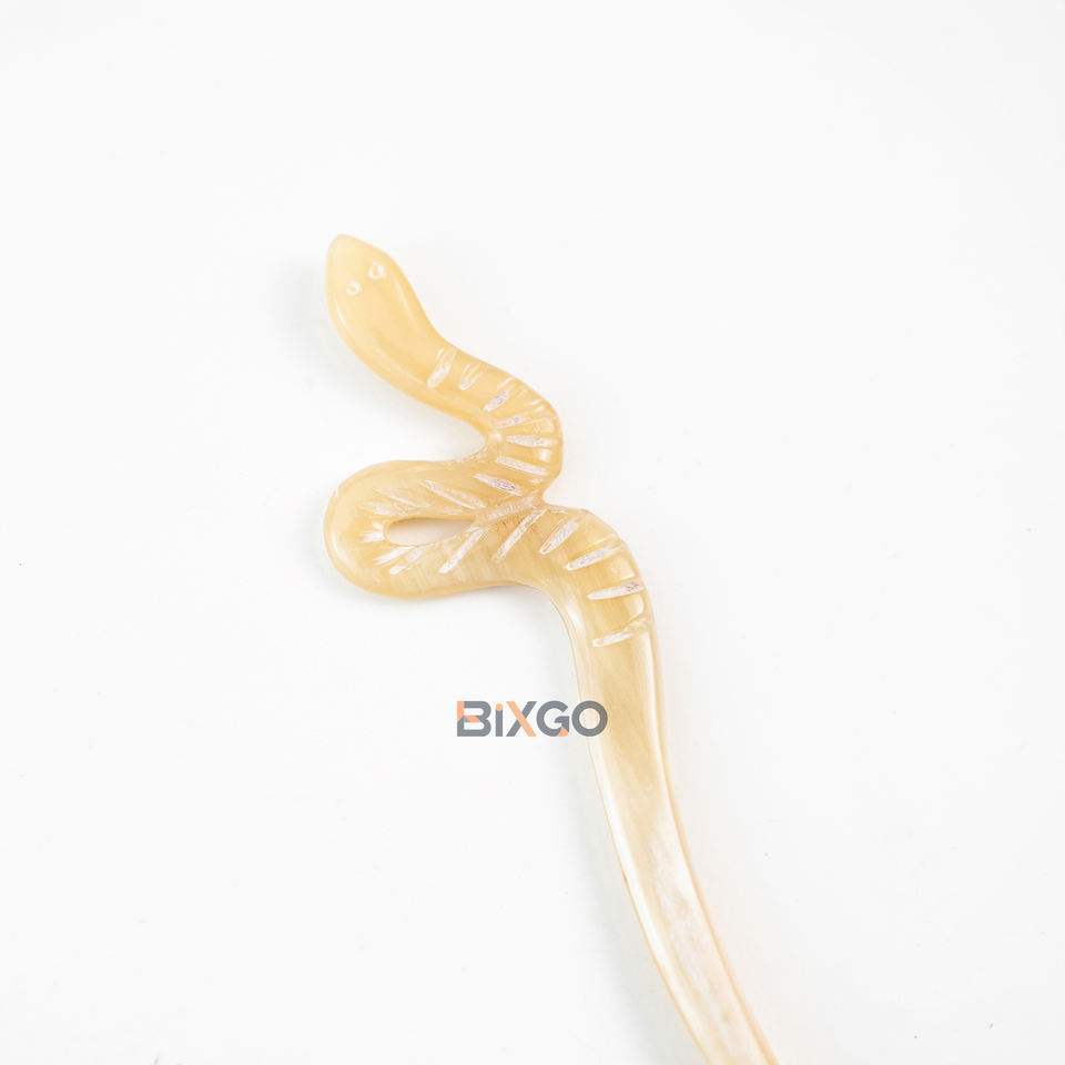 ไม้เสียบผมทรงงูทำจากเขาควาย น้ำหนักเบา สีเหลืองธรรมชาติ แกะสลักด้วยมือ ดีไซน์เก๋ไก๋สำหรับจัดแต่งทรงผม