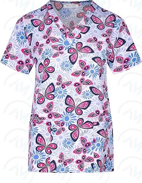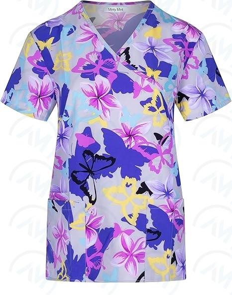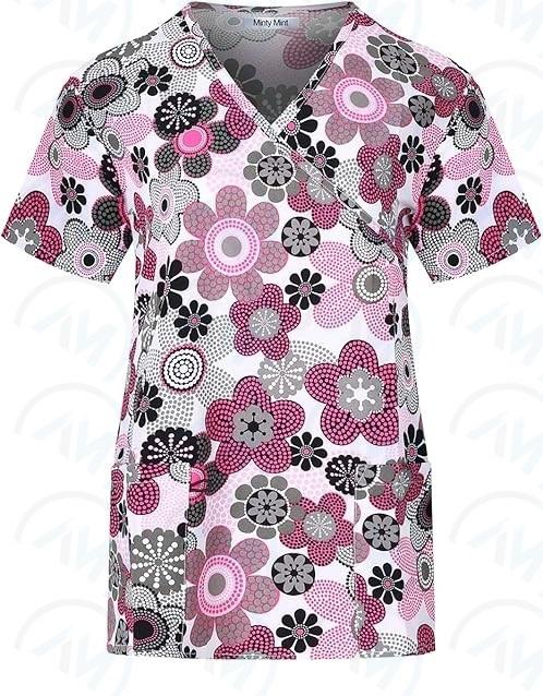 Soft Stretch Printed V-Neck Medical Scrub Top For Nurses By Al Mida