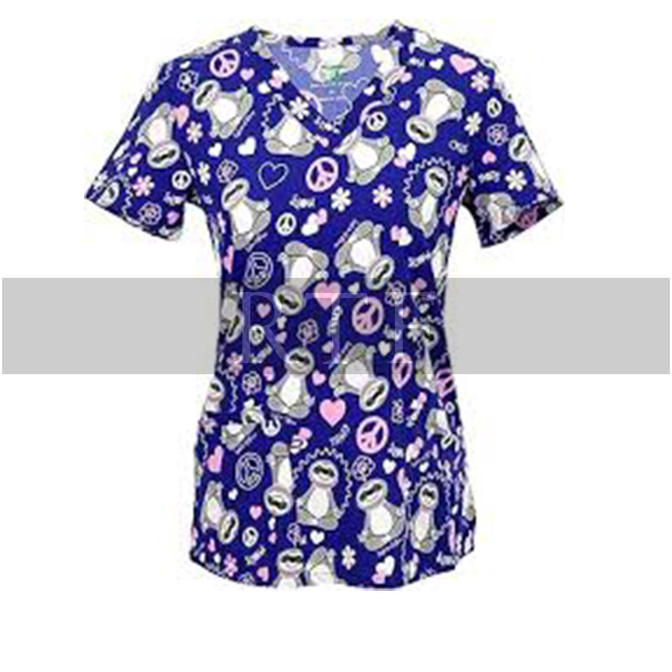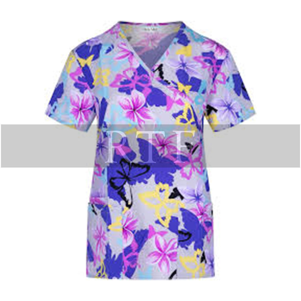 เสื้อสครับทางการแพทย์คอวีพิมพ์ลายเนื้อนุ่มน้ำหนักเบาสำหรับพยาบาล