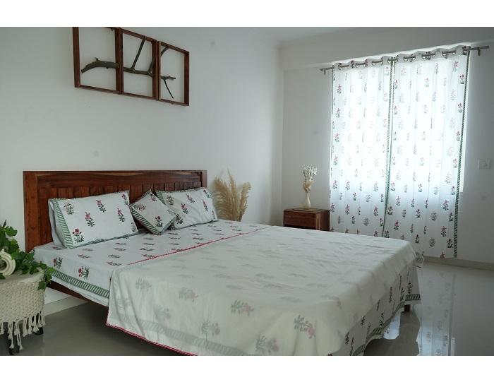 ผ้าโดฮาร์ผ้าฝ้ายพิมพ์ลายดอกไม้ดีไซน์หรูสำหรับใส่นอนผ้าห่มนอนนุ่มสบายมีสไตล์เป็นมิตรต่อสิ่งแวดล้อม