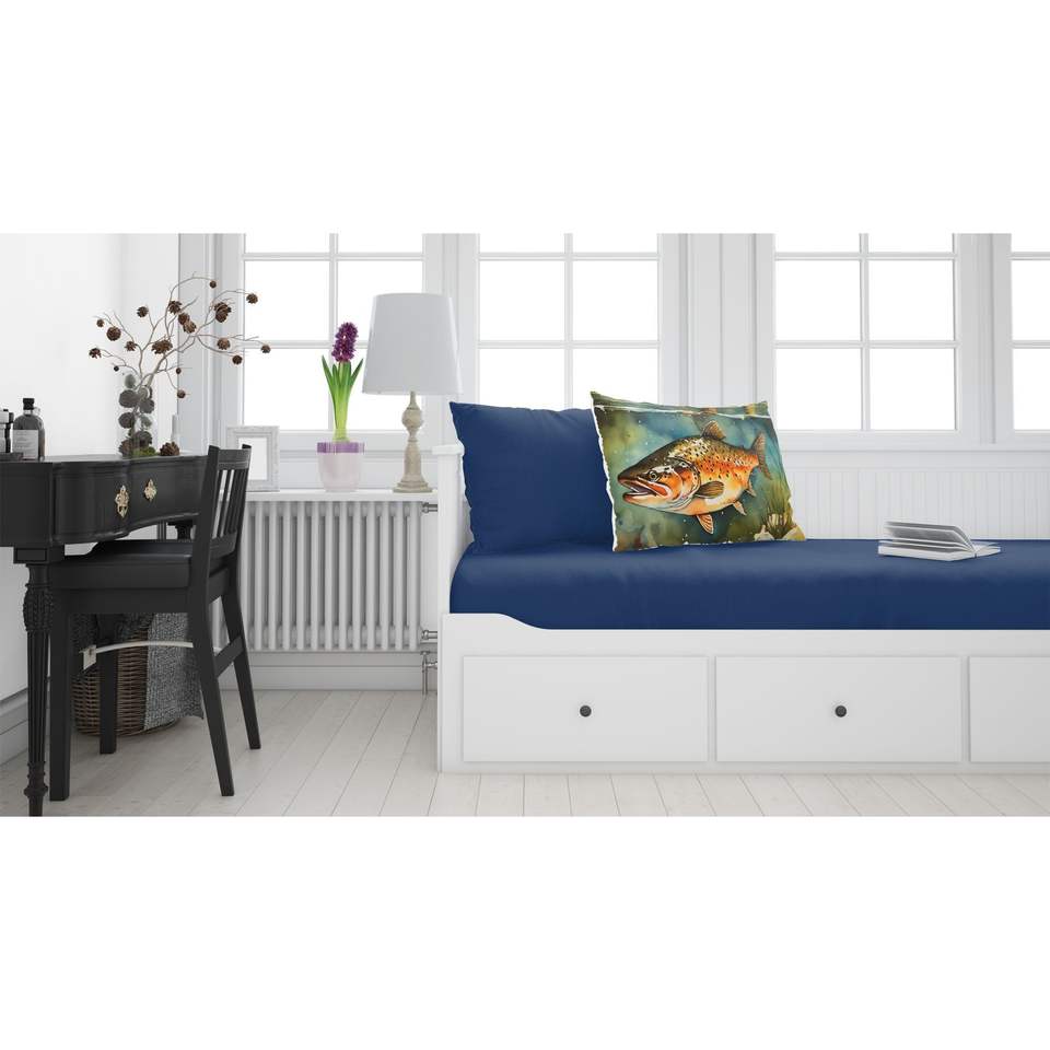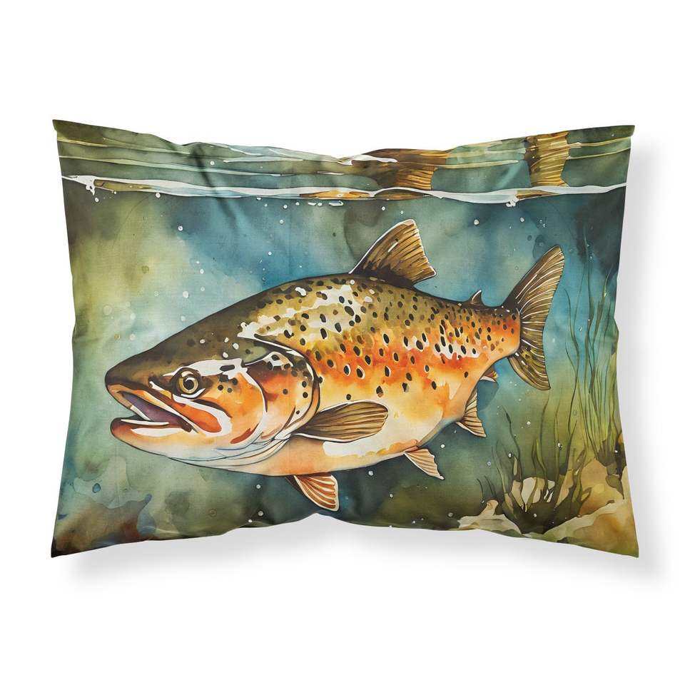 ปลอกหมอนอิงขนาดมาตรฐานน้ำหนักเบาสำหรับตกแต่งด้วยลายปลาเทราท์สีน้ำตาลอ่อนดูแลง่าย