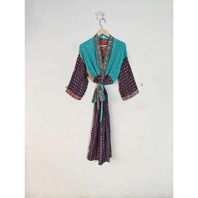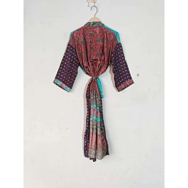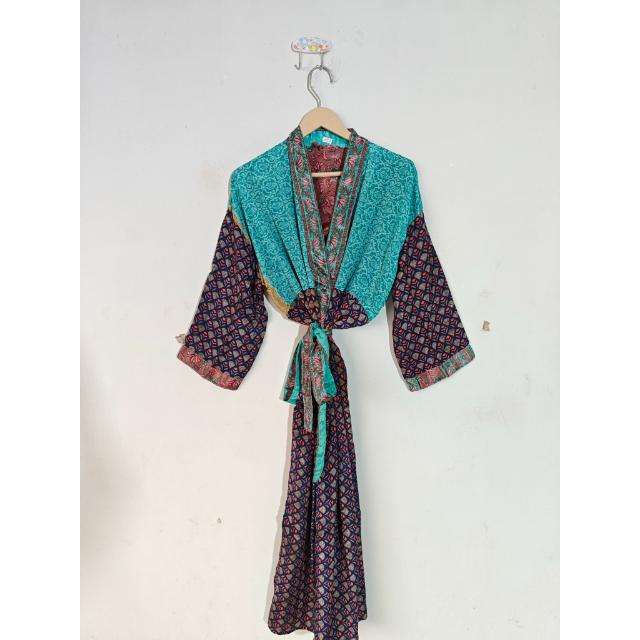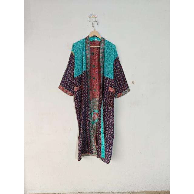 ชุดคลุมกิโมโนผ้าไหมเทอร์มอลน้ำหนักเบา ทำจากผ้าส่าหรีรีไซเคิล ชุดนอนคนท้อง ชุดคลุมชายหาดสไตล์โบฮีเมียน ชุดคลุมบิกินี่ ชุดลำลองสำหรับชีวิตประจำวัน ฤดูหนาว