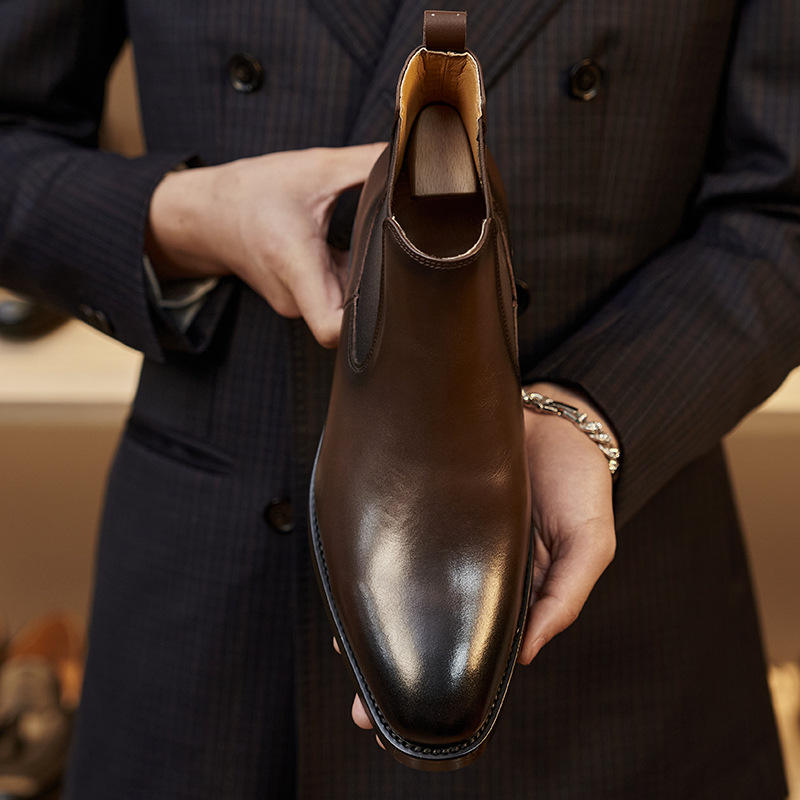 Lightweight Thick Sole Oxfords Glossy Business Casual Style Men's British Style Brogues Leather Shoes Genuine Cowhide Lining