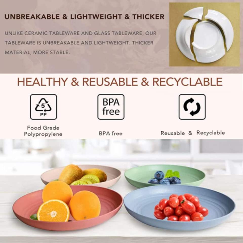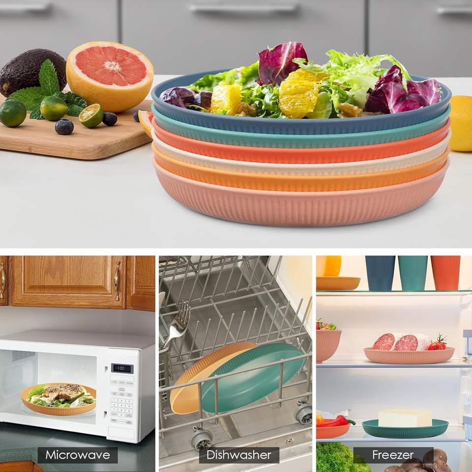 จานฟางข้าวสาลีน้ำหนักเบา ไม่แตกหัก ใช้กับไมโครเวฟและเครื่องล้างจานได้ เหมาะสำหรับเด็กและผู้ใหญ่ ใช้สำหรับสลัด พาสต้า ของว่าง
