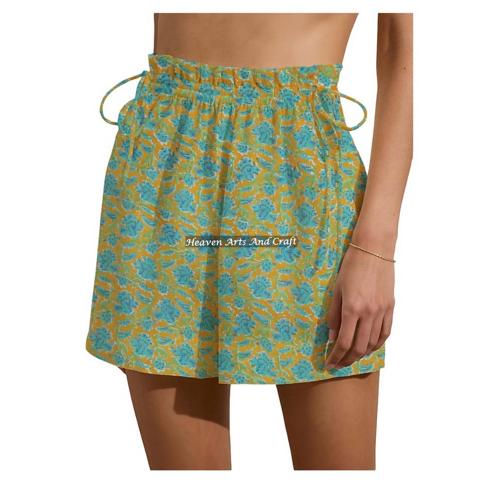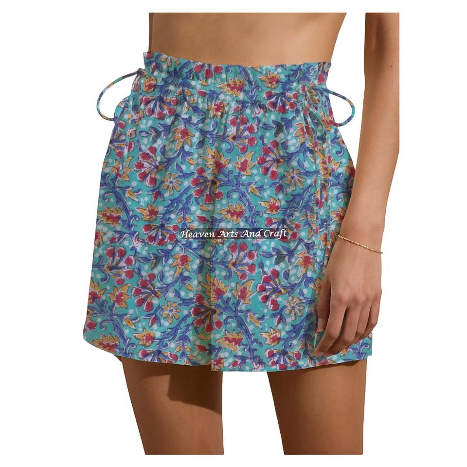 ชื่อสินค้า:กางเกงขาสั้นผ้าฝ้าย 100% พิมพ์ลายบล็อกมือ ใส่สบายๆ วันหยุดสุดสัปดาห์