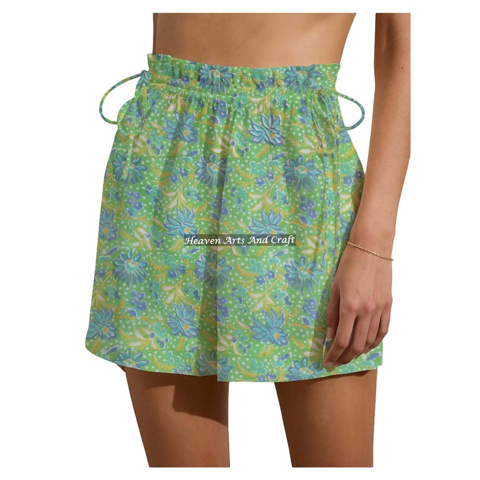 กางเกงขาสั้นลายพิมพ์ผ้าฝ้าย 100% ใส่สบายสำหรับวันหยุดสุดสัปดาห์, สาวฮอตเซ็กซี่ ใส่กางเกงขาสั้นช่วงสุดสัปดาห์