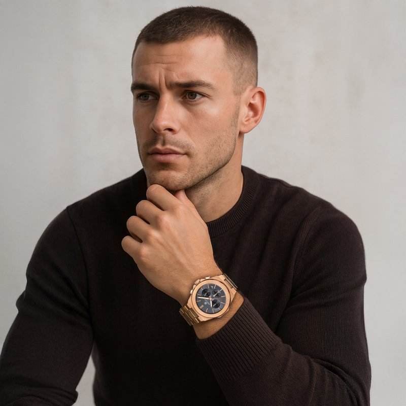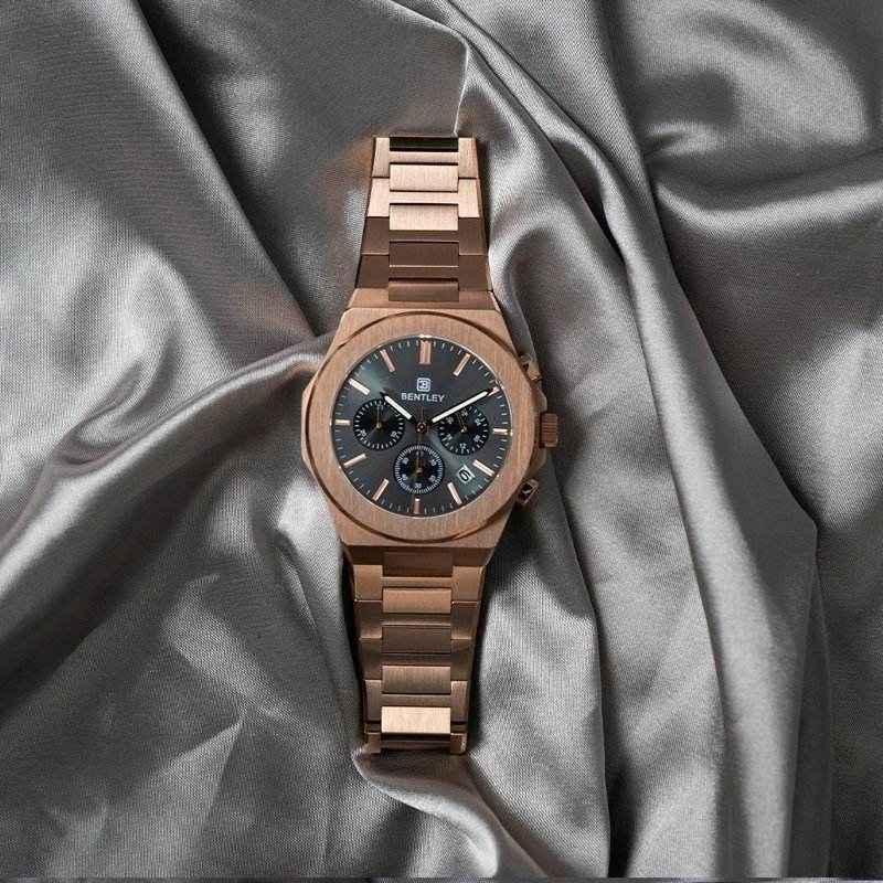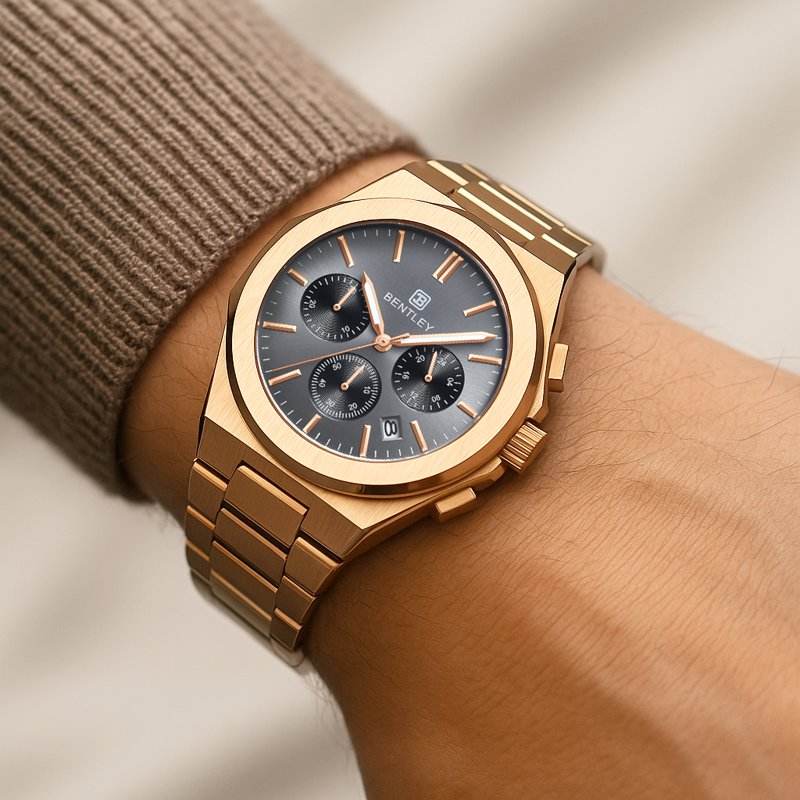 นาฬิกาสแตนเลสสตีลสีทองน้ำหนักเบาสร้างขึ้นด้วยสายรัดที่นุ่มสบายและแม่นยำ