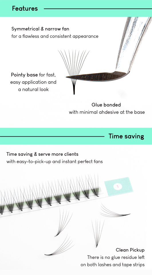 การต่อขนตาแบบพัดลมแคบทำไว้ล่วงหน้าชื่อผลิตภัณฑ์