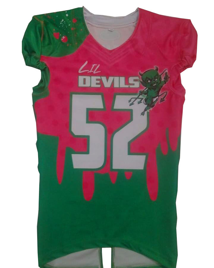 Lil Devils Sublimated หมายเลขชื่อโลโก้ฟุตบอลอเมริกันชุด