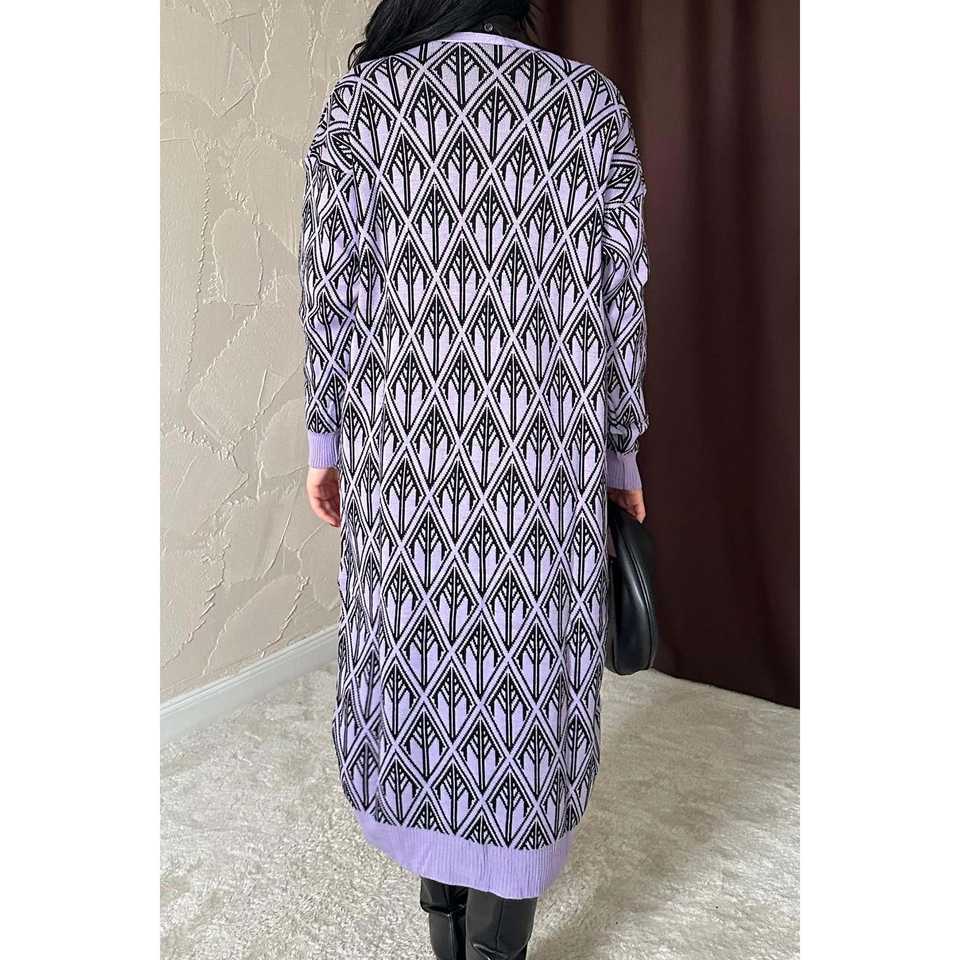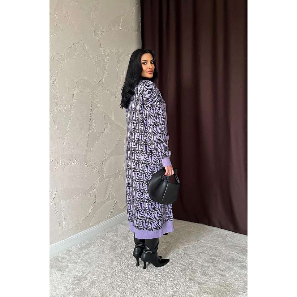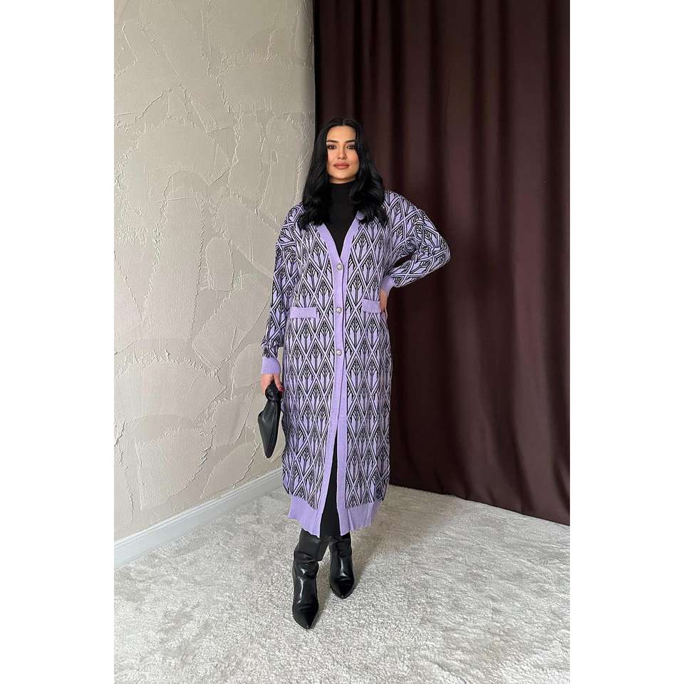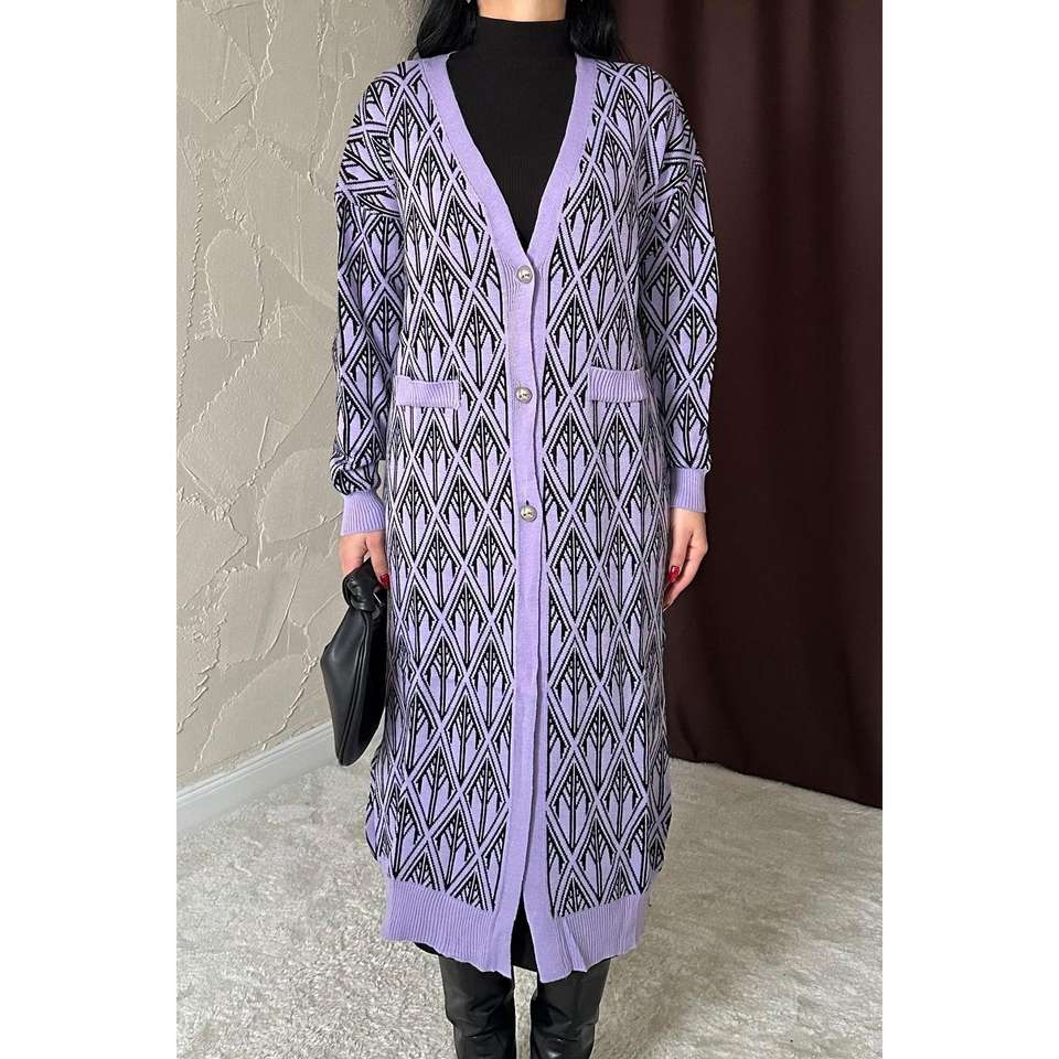 เสื้อคาร์ดิแกนถักสีม่วงไลแลค กระดุมหน้า แขนยาว สไตล์ลำลองสำหรับผู้หญิง ผ้าถักไม่เป็นขุย เสื้อคลุมแฟชั่น