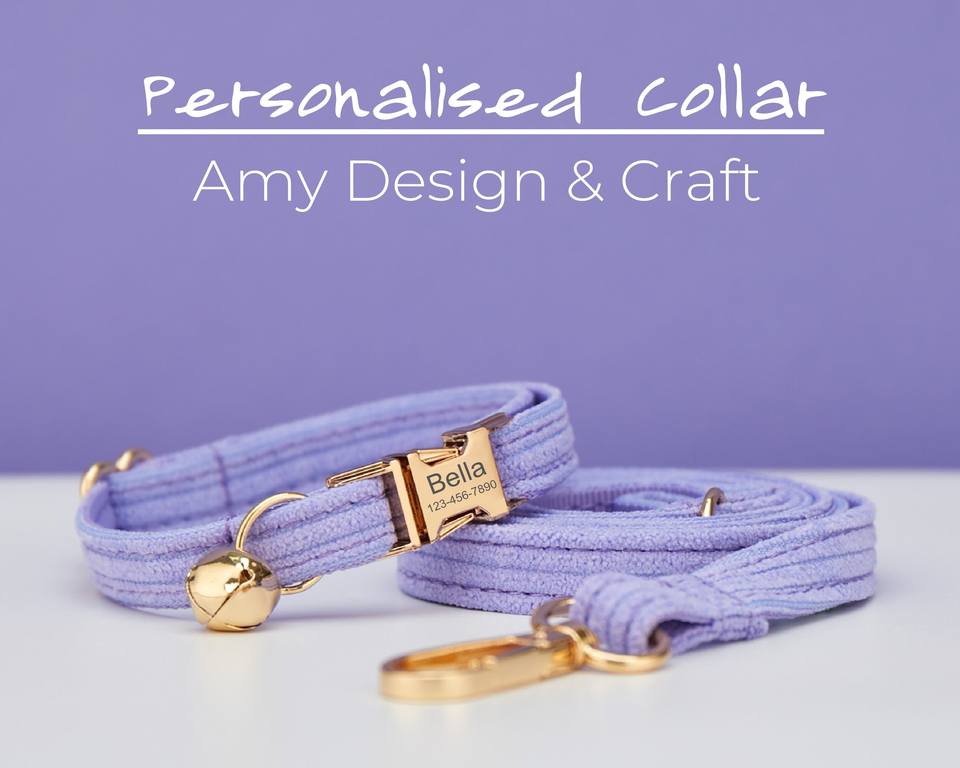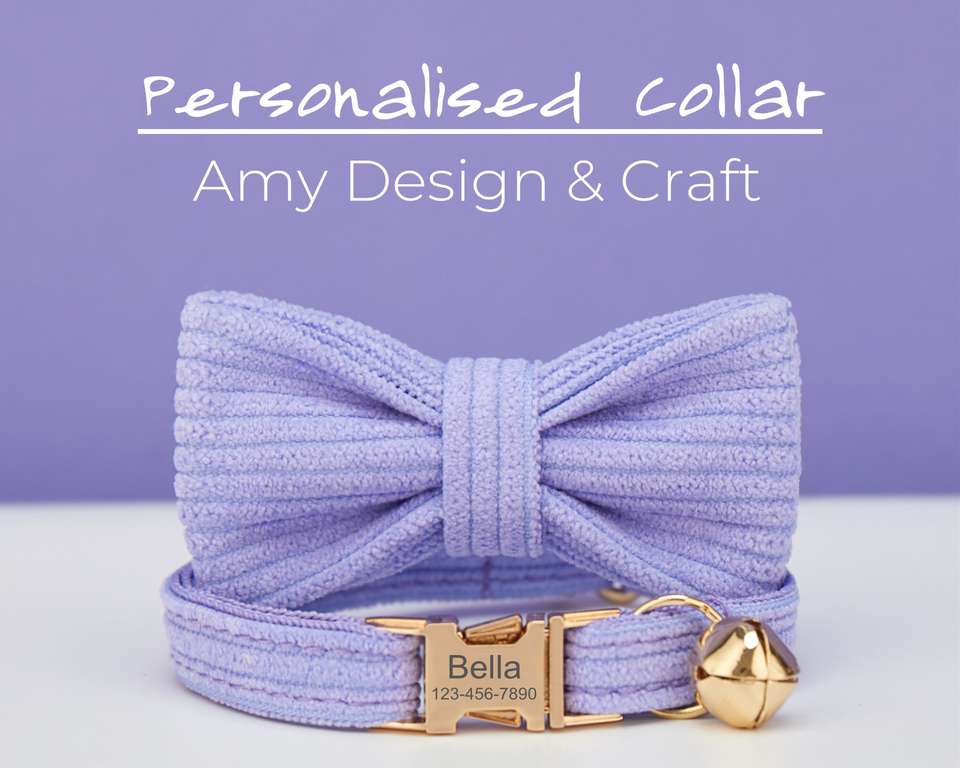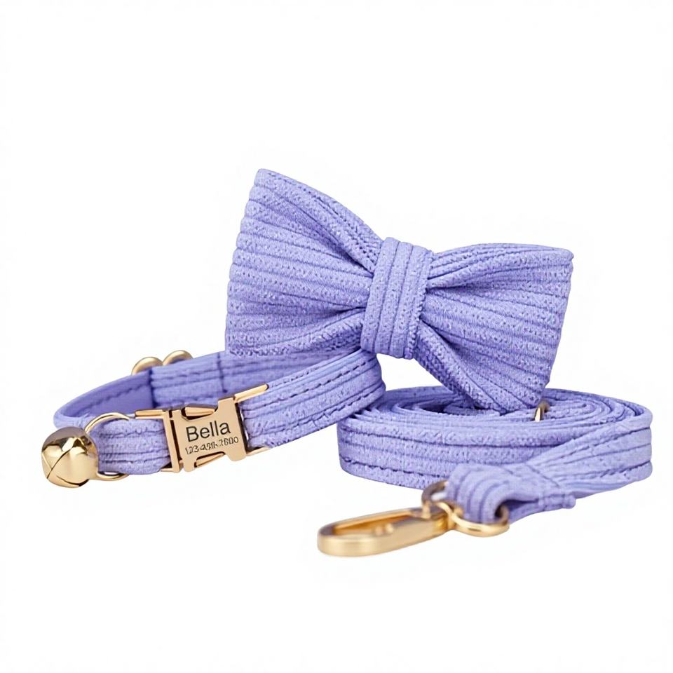 ชุดปลอกคอและสายจูงสัตว์เลี้ยงแบบกำมะหยี่สีม่วงไลแลค พร้อมป้ายชื่อสลักชื่อฟรีสำหรับลูกแมว/ลูกสุนัข พร้อมกระดิ่งทอง