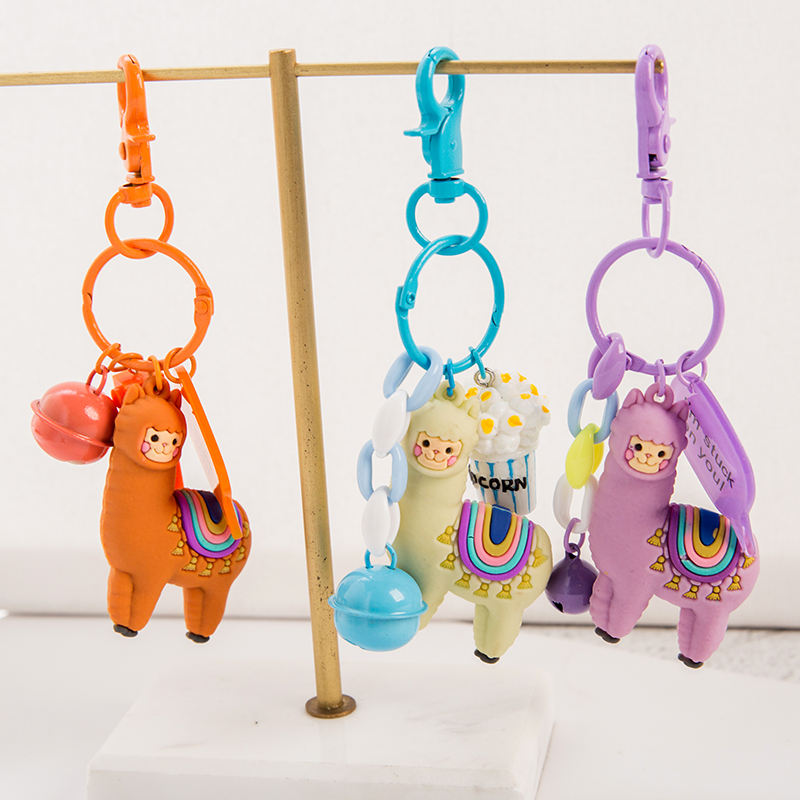 Lilangda พวงกุญแจ PVC น่ารัก DIY สีชมพูสีม่วงสีขาวสีส้มพู่ห้อยพวงกุญแจอัลปาก้าพวงกุญแจน่ารัก