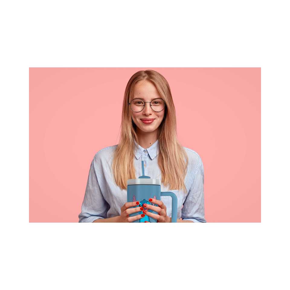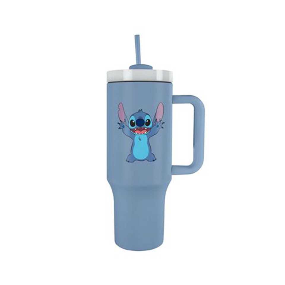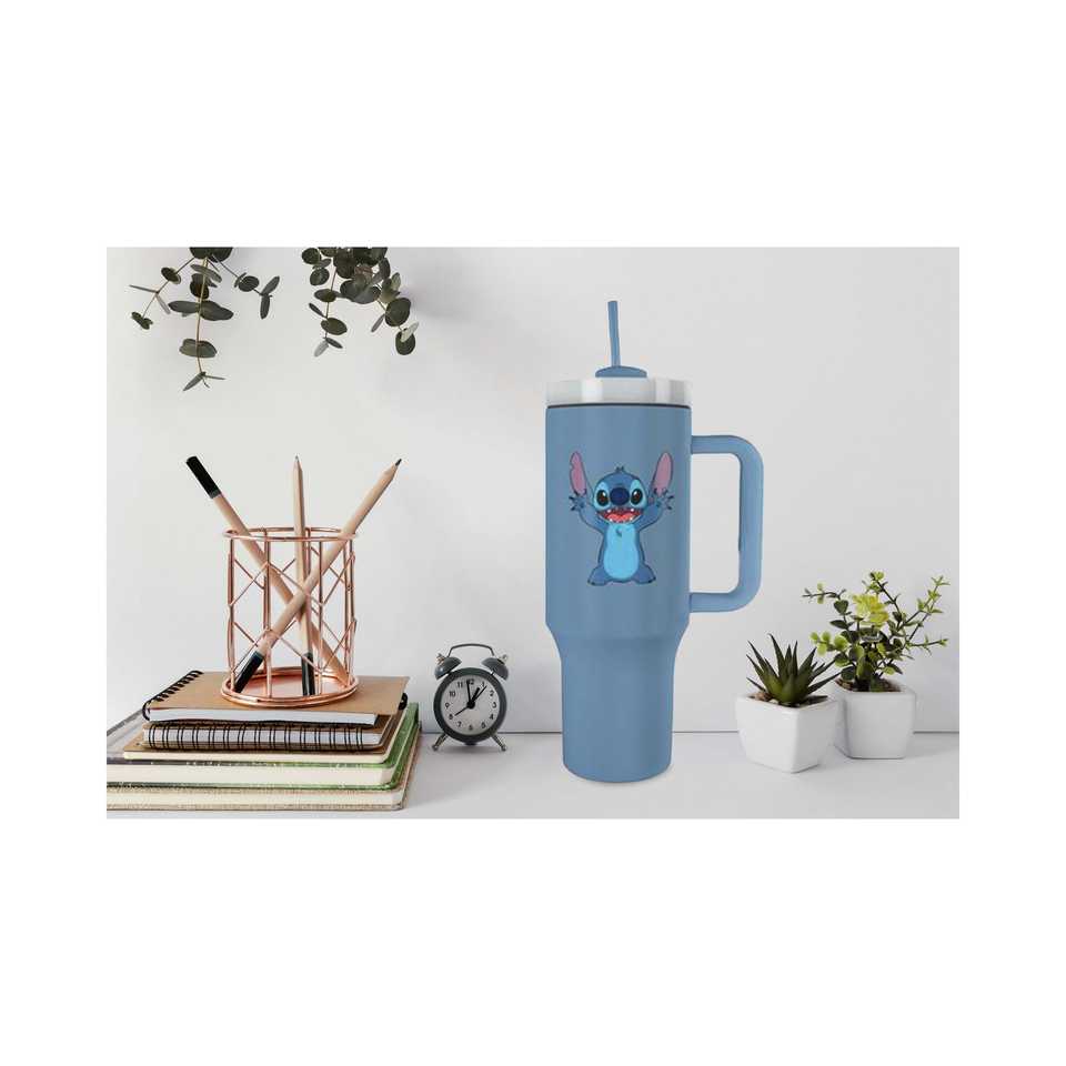 แก้วน้ำลิโลแอนด์สติทช์แบบเก็บความร้อนสีฟ้า ทำจากสแตนเลสสตีล ขนาดประมาณ ความจุ 1.2 ลิตร คู่หูสำหรับการเดินทาง