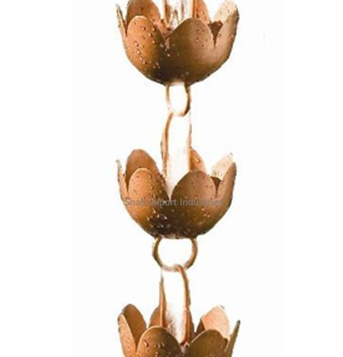 โซ่ฝนออกแบบลายดอกลิลลี่สำหรับตกแต่งกลางแจ้งโซ่ฝนโลหะโบราณสำหรับบ้านและสวน