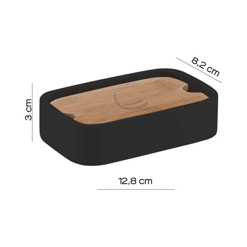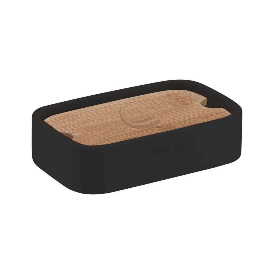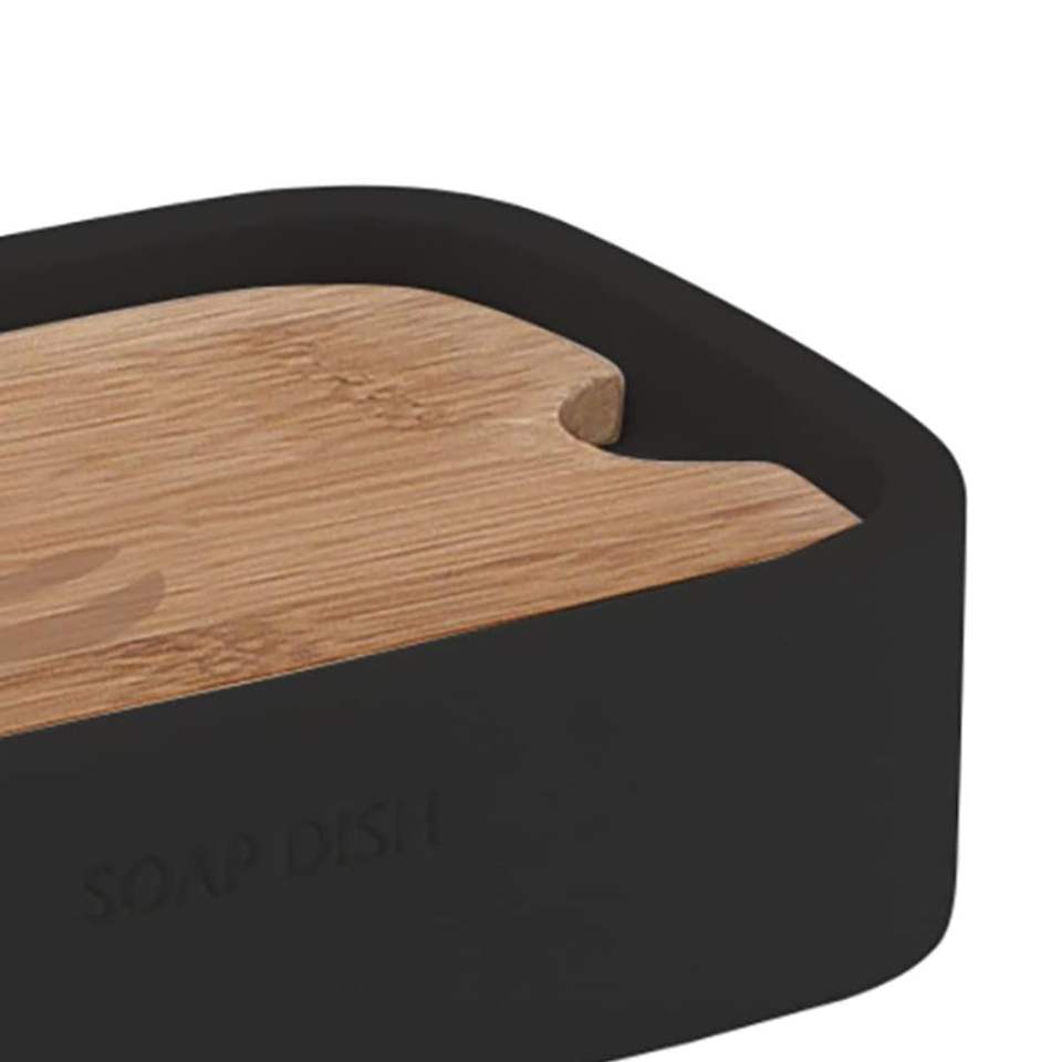Lily Series Matt Black Free-Standing Soap Dish Resin and Bamboo for Bathroom Use Pack of 1
