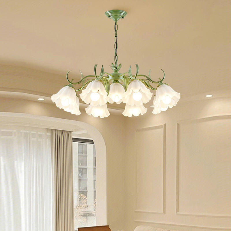 โคมไฟระย้าแก้วสไตล์ดอกไม้ฝรั่งเศสลิลลี่วัลเล่ย์ สีครีม สไตล์นอร์ดิก สำหรับห้องนั่งเล่น ห้องนอน โคมไฟเพดานแบบใหม่