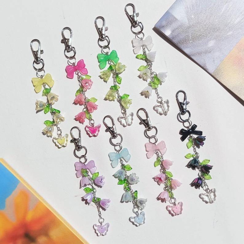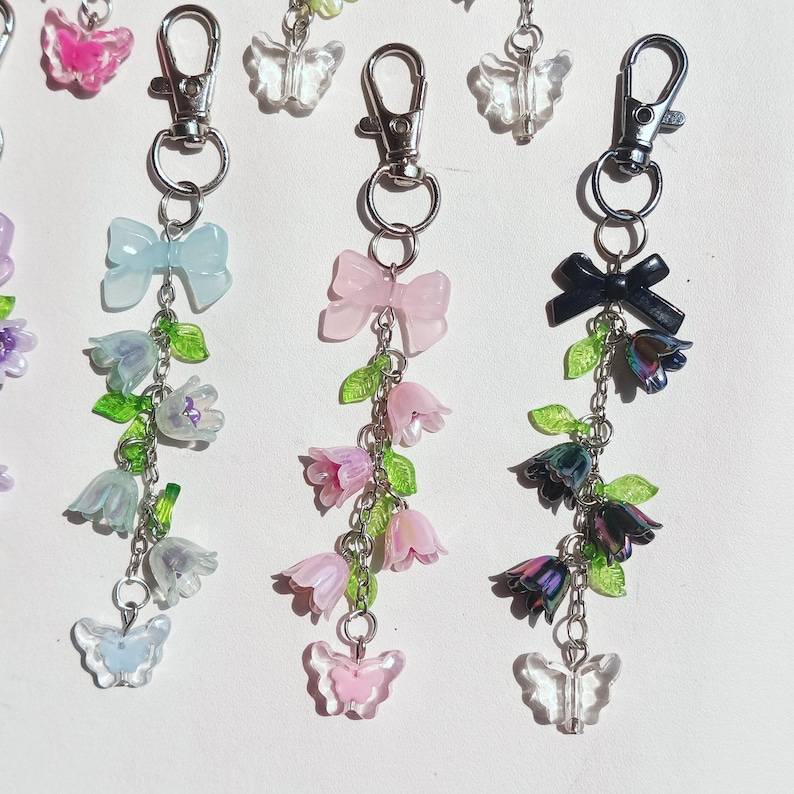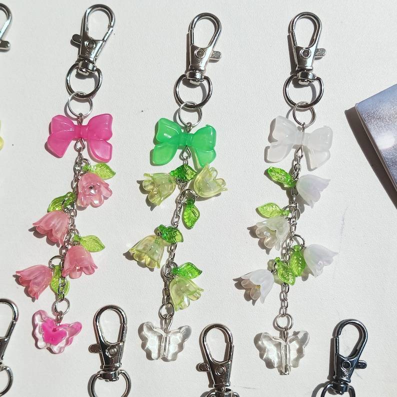 พวงกุญแจสตรอว์เบอร์รีประดับลูกปัด: ตัวล็อคแบบเปลือกหอยสีทอง จี้ห้อยกระเป๋า รูปสตรอว์เบอร์รี