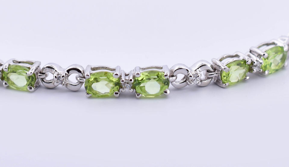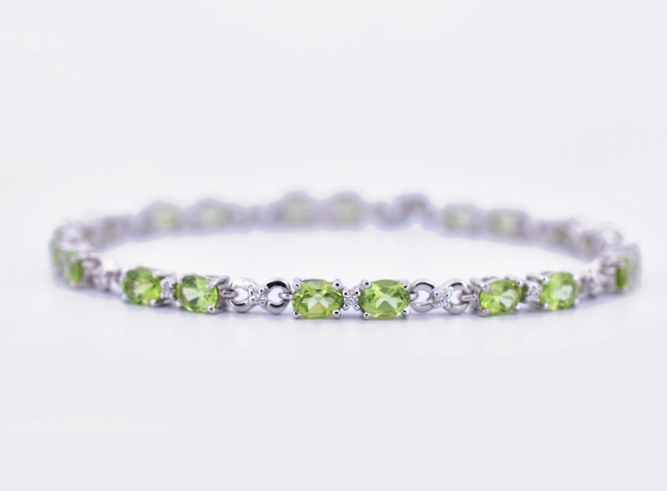 กำไลข้อมือทรงรีประดับเพอริดอตและเพชร CZ สำหรับเดือนสิงหาคม ทำจากเงินแท้ 925