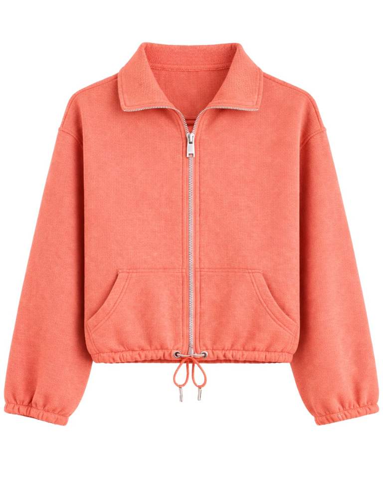 เสื้อสเวตเชิ้ตผ้าฟลีซสีเขียวมะนาวแบบครอป ซิปยาวเต็มตัว คอปกโปโล มีกระเป๋าหน้า ปรับเชือกผูกชายเสื้อได้ สวมใส่สบาย อุ่นสบาย สไตล์สตรีทแวร์