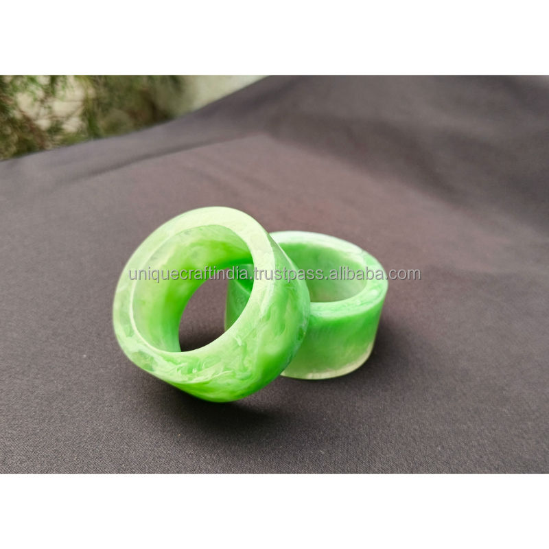 แหวนผ้าเช็ดปากทำจากเรซิ่นสีเขียวมะนาวของตกแต่งโต๊ะลายหินอ่อนทำด้วยมือสำหรับรับประทานอาหารและงานแต่งงานที่หรูหรา