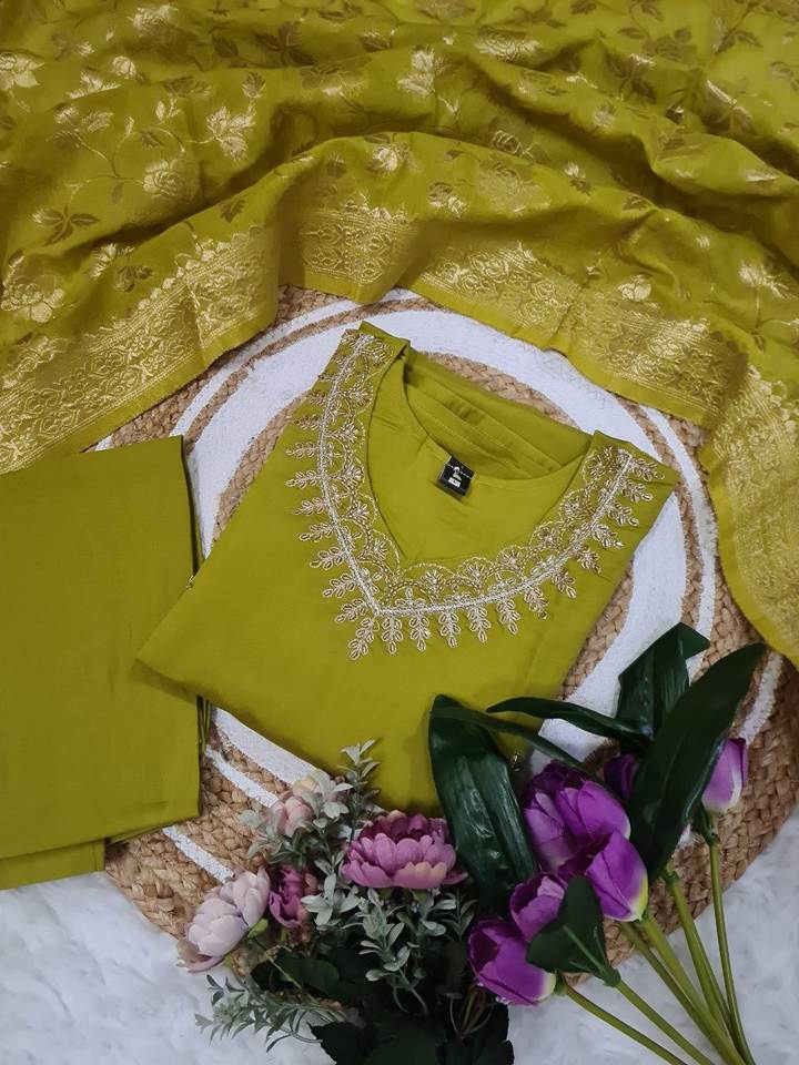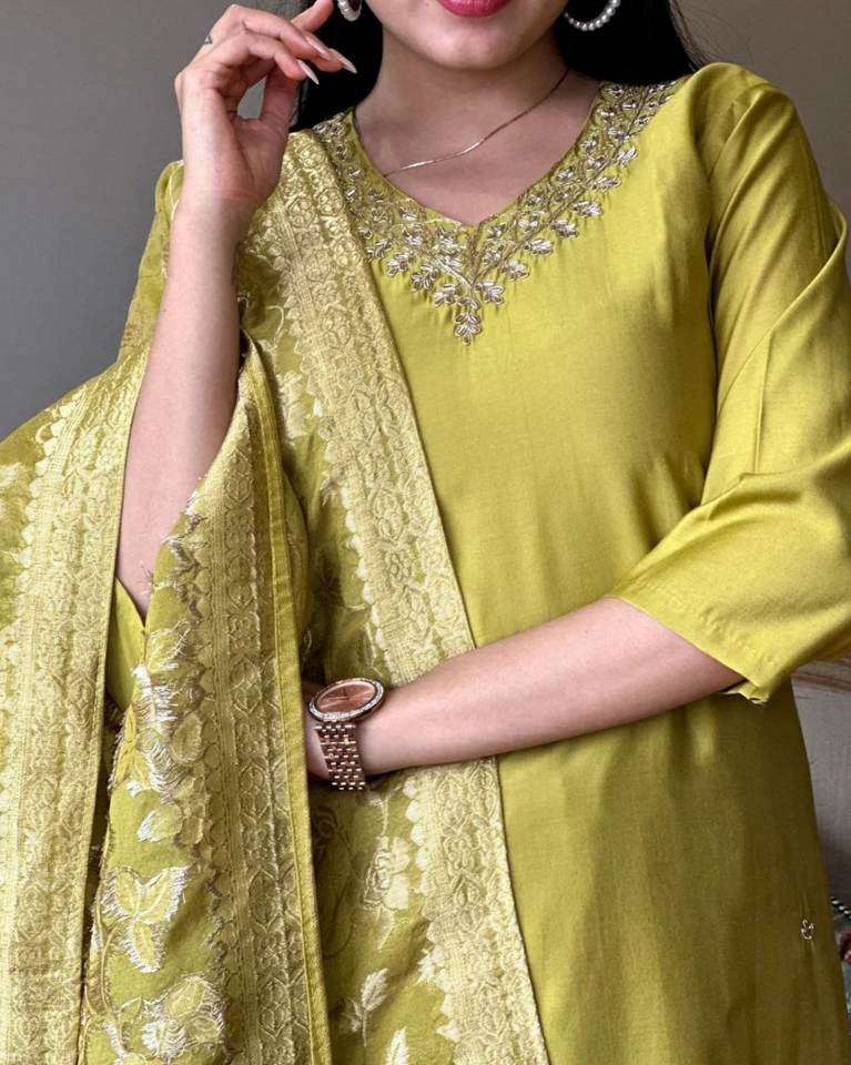 LIME Luxe ชุด kurta มัสตาร์ดแบบตรงพร้อมด้วย zari dupatta ที่สง่างามสไตล์บอลลีวูดสำหรับงานเลี้ยงฤดูหนาว