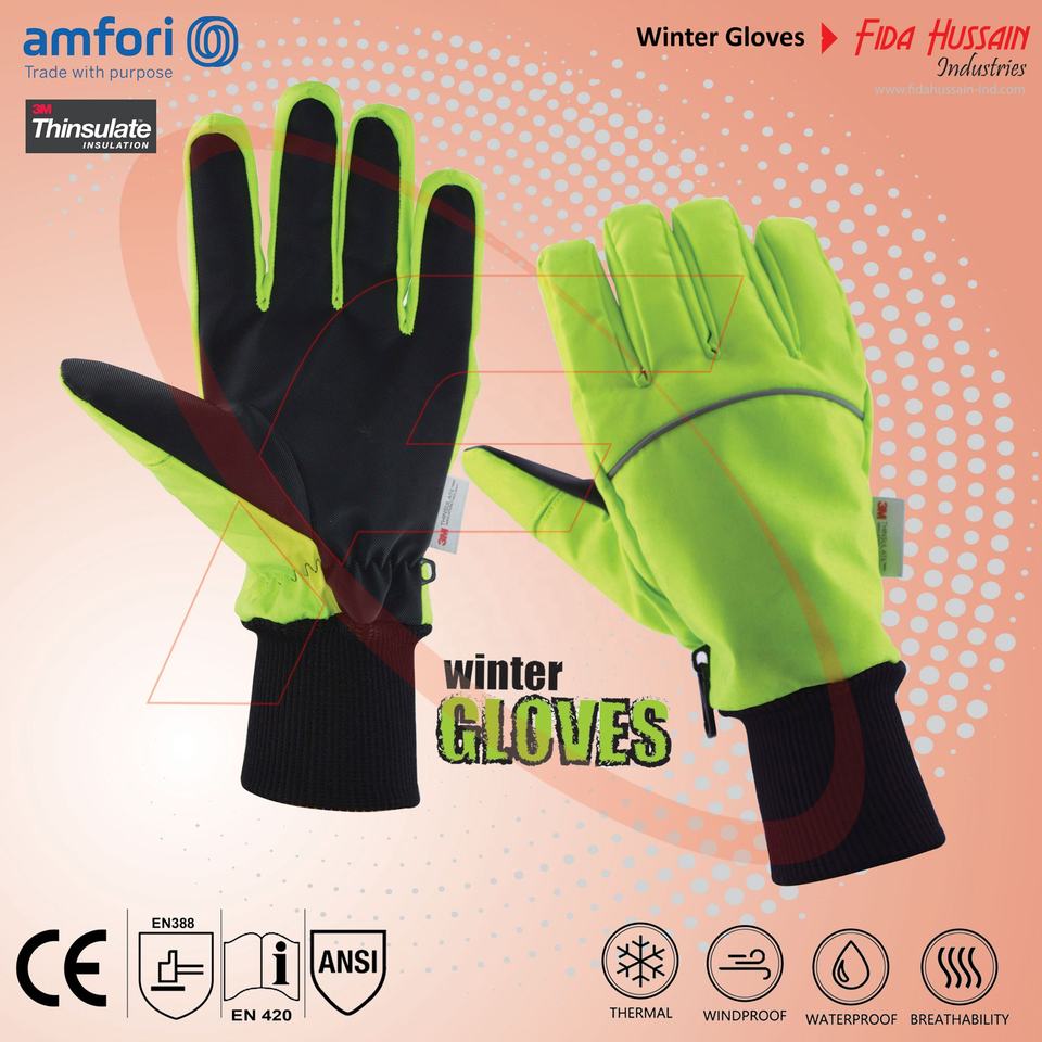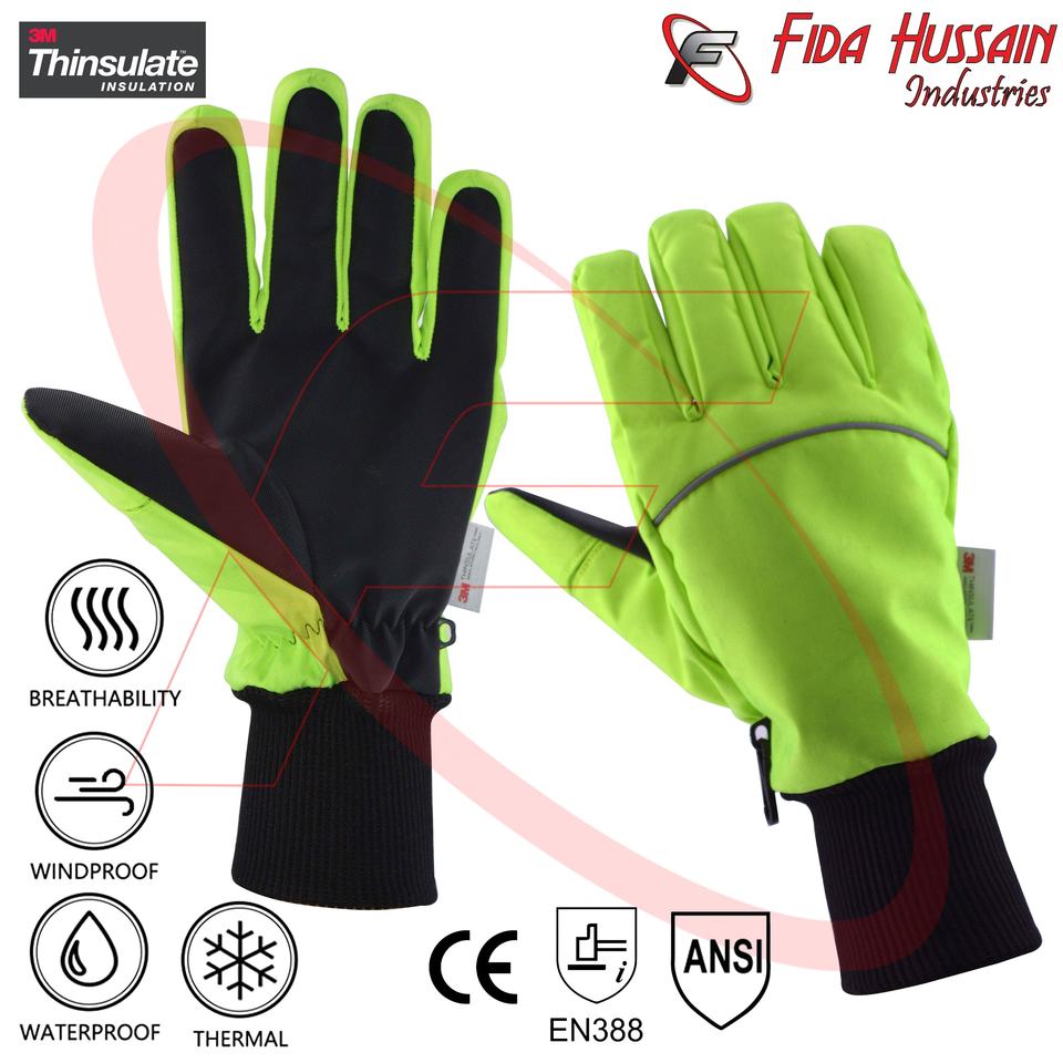 Limegregreen ถุงมือนิรภัยสำหรับสกี, ถุงมือช่างหนังสังเคราะห์ป้องกันการลื่น