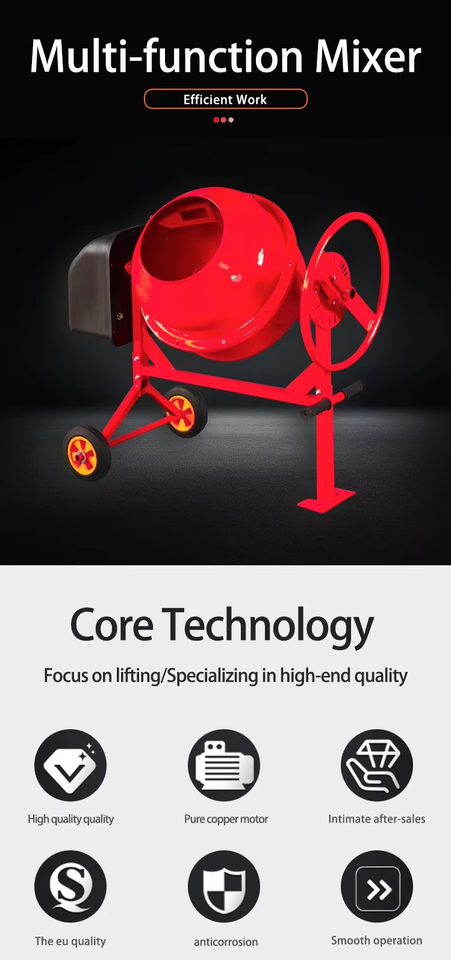 เครื่องผสมปูนไฟฟ้าเกรดก่อสร้าง 180 ลิตร เหล็กกล้า ปั๊มมือ ปั๊มมอเตอร์ – สำหรับโรงงานผลิต ฟาร์ม ผสมคอนกรีต