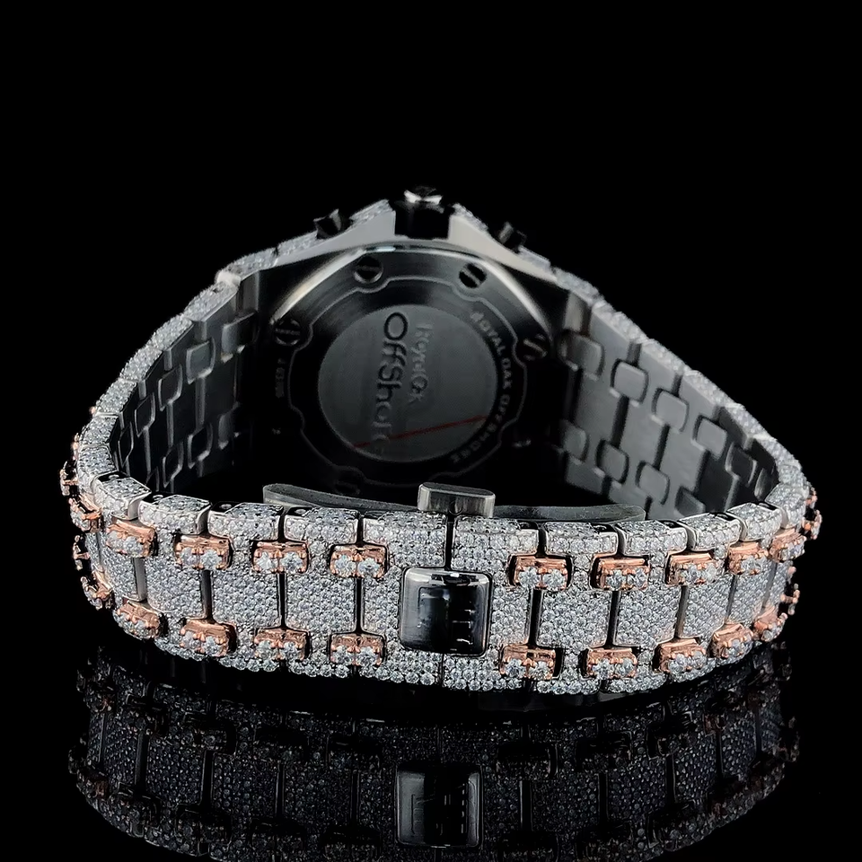 นาฬิกาควอตซ์อัตโนมัติสุดหรู รุ่นลิมิเต็ดอิดิชั่น ขนาด 41 มม. ตัวเรือนสแตนเลสสตีล ประดับเพชร VVS มอยส์ซาไนต์ โทนสีเหลืองทองและสีเงิน