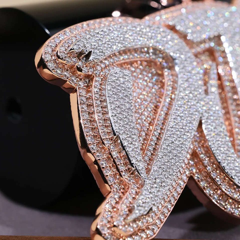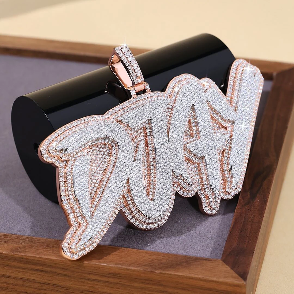 จี้เพชรโมอิสซาไนต์ VVS รุ่นลิมิเต็ดอิดิชั่น สไตล์ฮิปฮอป ประดับเงินแท้ 925 พร้อมตัวอักษรแบบกำหนดเอง งานฝังเพชรจากอินเดีย