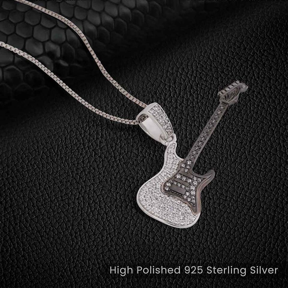 สร้อยคอจี้เพชรโมอิสซาไนต์ VVS รุ่นลิมิเต็ดอิดิชั่น ประดับเพชรแบบ Iced Out สไตล์ฮิปฮอป ดีไซน์กีตาร์ ชุบทองบนเงินแท้ 925 สำหรับผู้ชาย