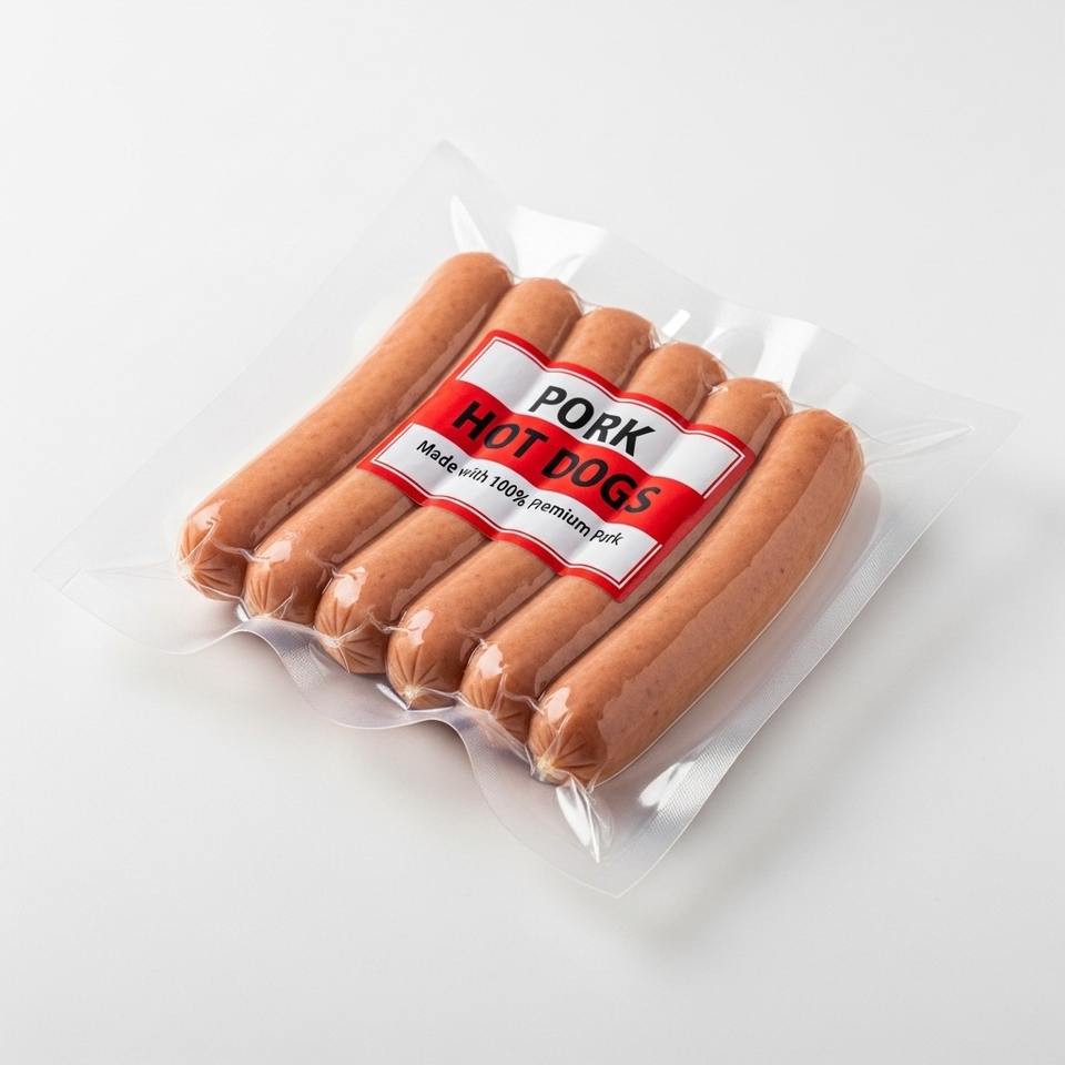 โปรโมชั่นจากโรงงานแบบจำกัดเวลาสำหรับฮอทด็อกทำจากเนื้อหมูที่ผ่านการคัดสรรบรรจุจำนวนมากสำหรับบริการอาหารและจัดจำหน่ายขายปลีก