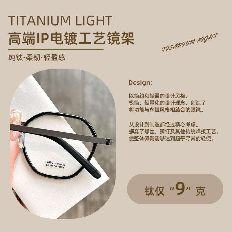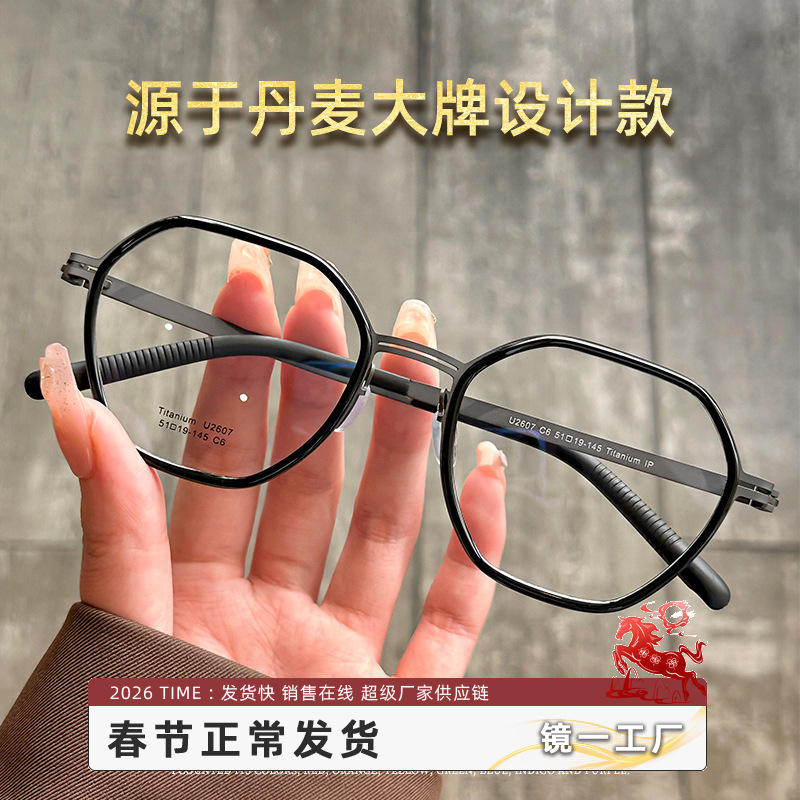 กรอบแว่นตาไทเทเนียมบริสุทธิ์สไตล์ลินด์ 2607 กรอบเต็มทรงเรขาคณิตน้ำหนักเบาสำหรับผู้ชายสายตาสั้นดันหยาง